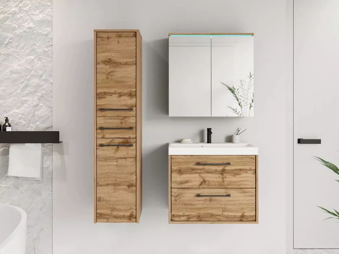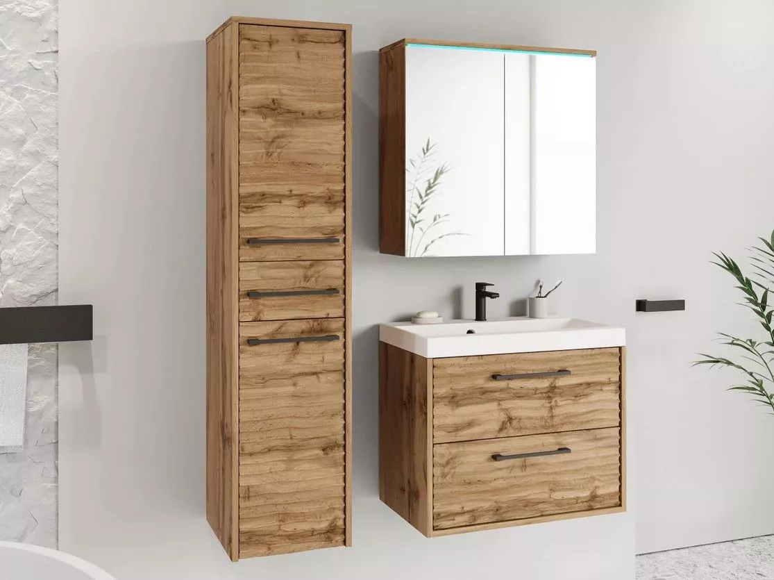 VÝPRODEJ - Sestava do koupelny s bílým LED osvětlením CRESSON 1 - dub wotan