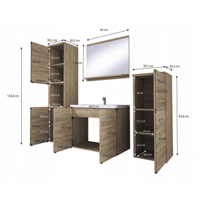 Koupelnová sestava s umyvadlem WHITNEY - dub lefkas + sifon ZDARMA
