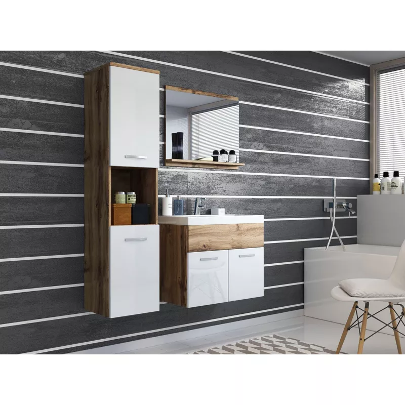 Koupelnová sestava ZORAIDA - dub wotan / lesklá bílá + baterie Platino ZDARMA