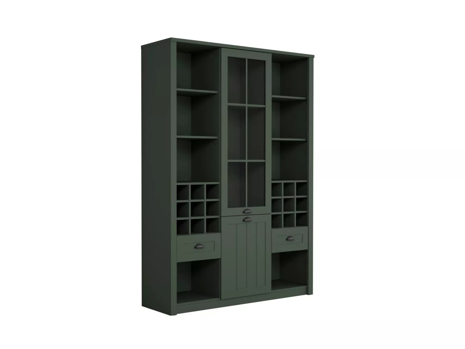 Vysoký kredenc do jídelny MARIONA v rustikálním stylu nabízí dostatek úložného prostoru. Pyšní se otevřenými i uzavřenými policemi v různých velikostech, klasickými šuplíky či přihrádkami na láhve.