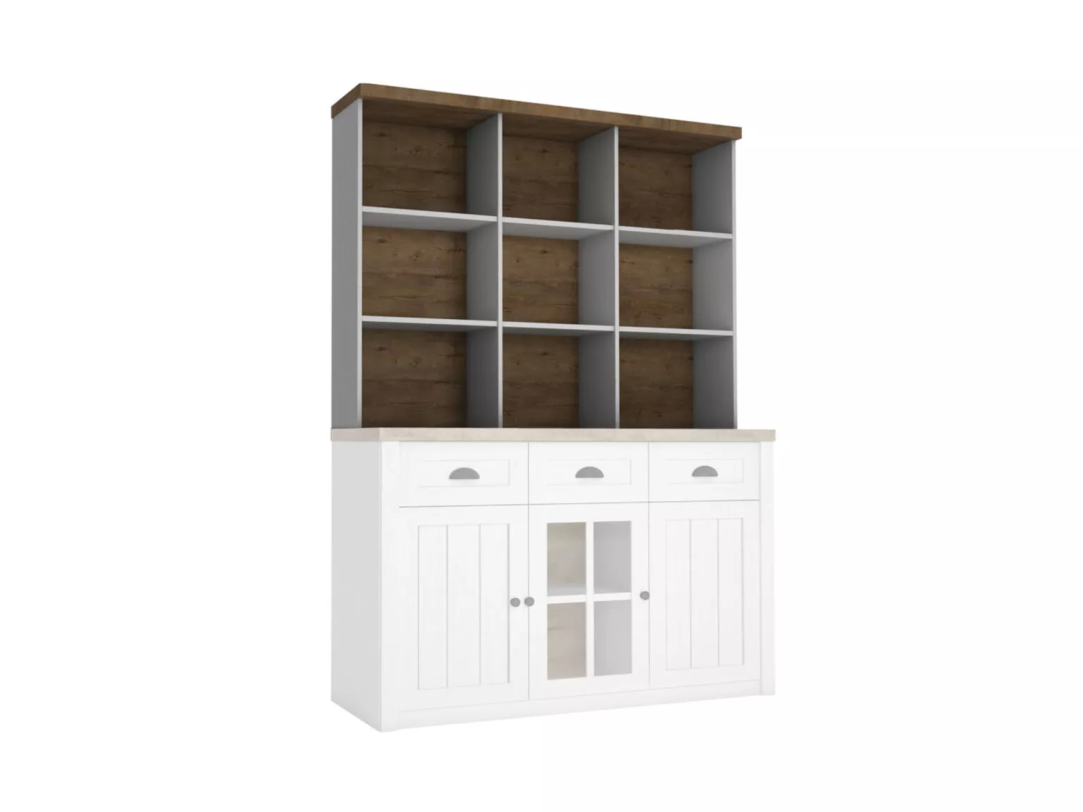 Nástavec na komodu MARIONA obsahuje 9 otevřených polic, které jsou ideálním místem pro ukládání knih nebo porcelánu. S nábytkem ze stejné řady vytvoří funkční vitrínu.