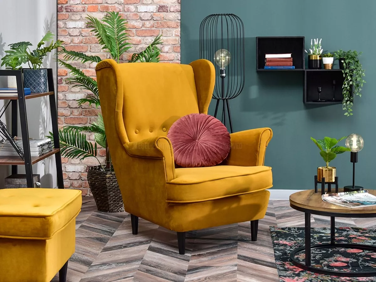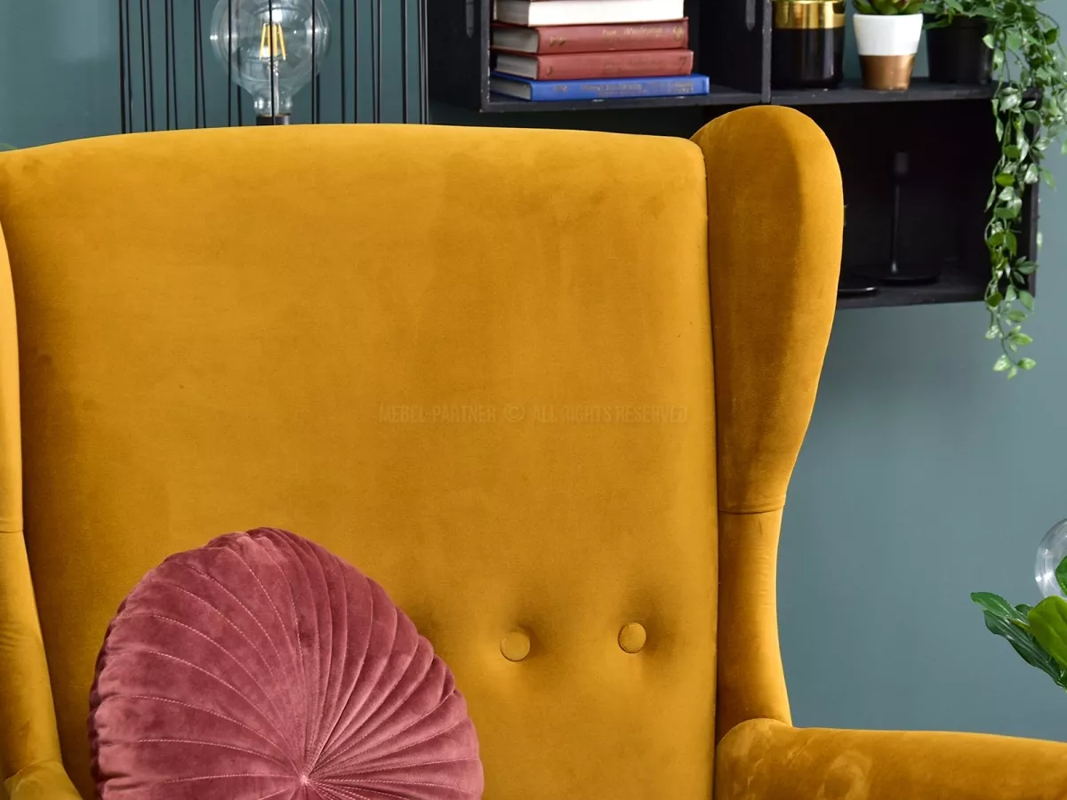 Křeslo ušák DENIZ nabízí zajímavý a originální design. Kvalitu zpracování podtrhují dřevěné nožky.
