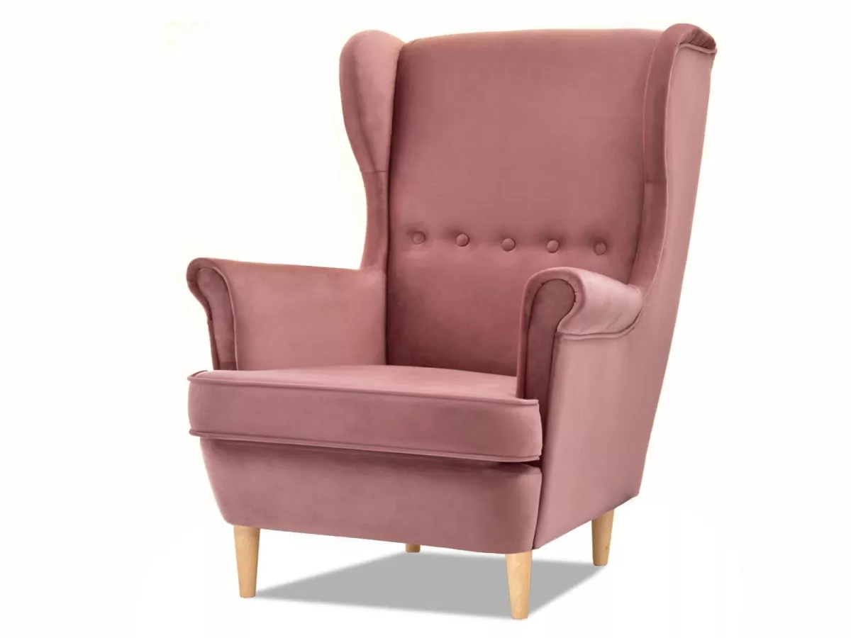 Křeslo ušák DENIZ - pastelově růžové / buk