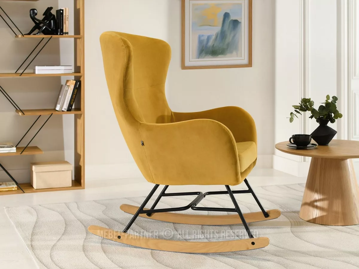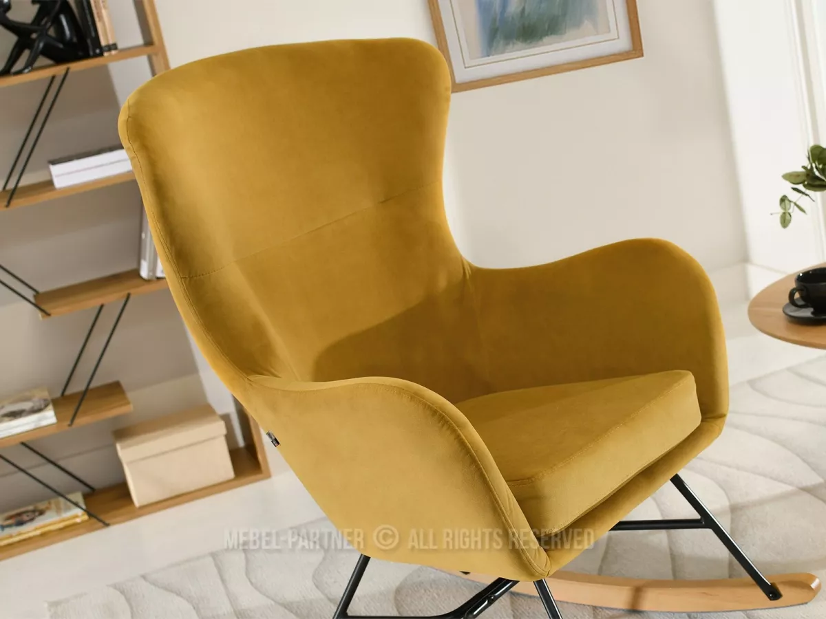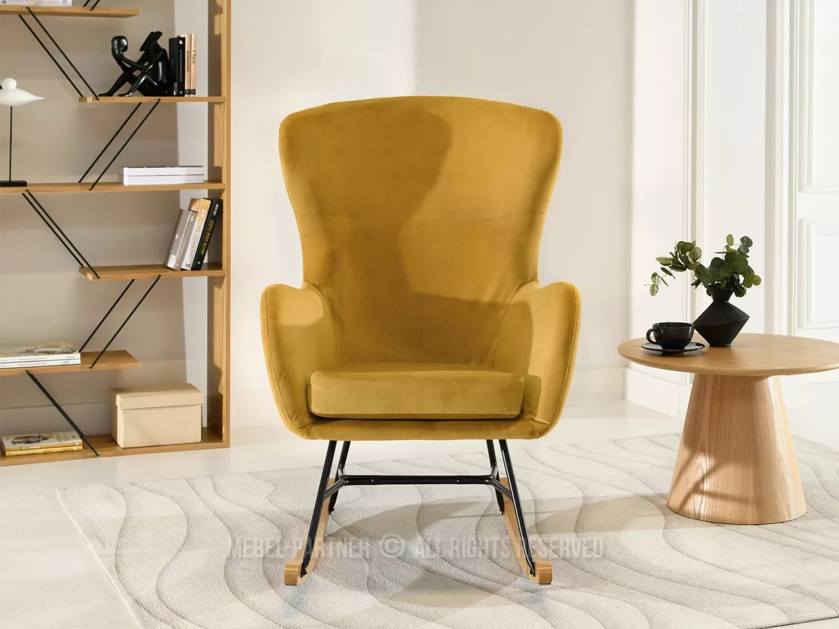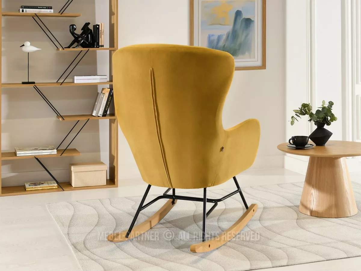 Houpací křeslo RIFAT - hořčicové / černé / buk
