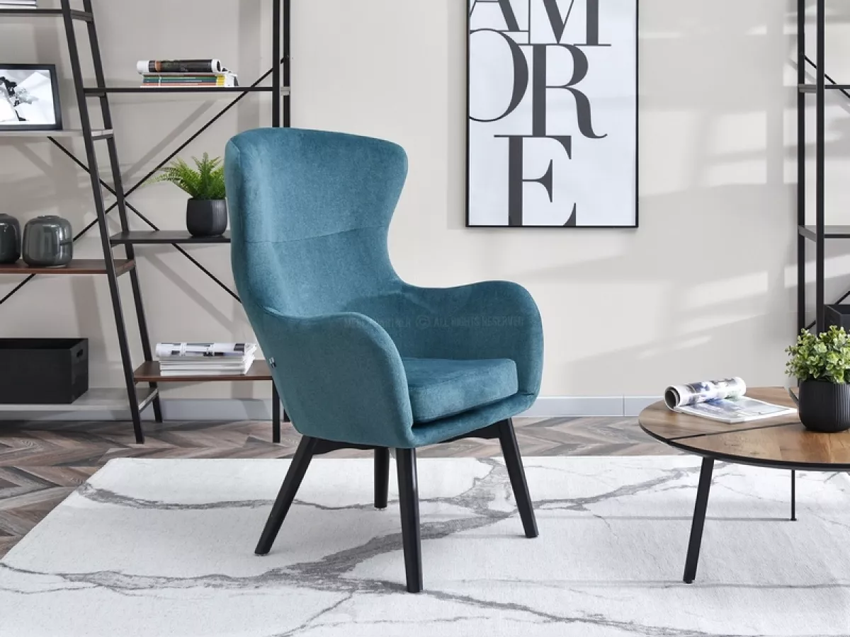 VÝPRODEJ - Křeslo ušák BORNA - tyrkysové / černé