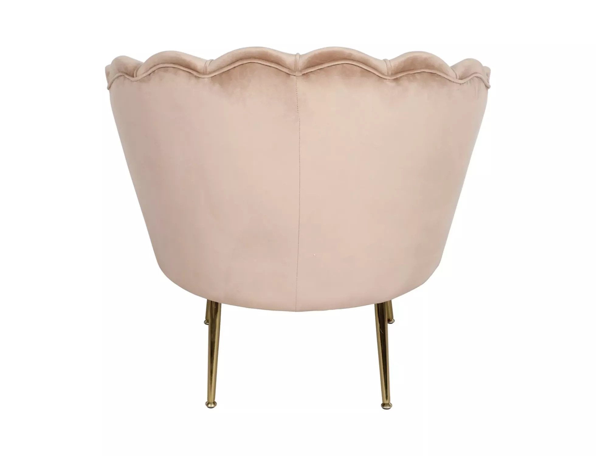Čalouněné křeslo ALISTER se hodí do stylových obývacích pokojů nebo kanceláři. Opěradlo ve tvaru mušle z něho dělá jedinečný kus nábytku. Luxusní vzhled podtrhují chromové nožky a sametové čalounění.