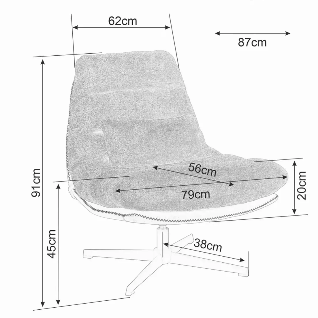 - hloubka sedu: 53 cm