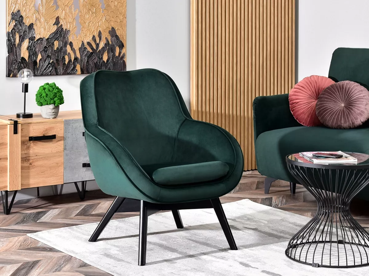 Čalouněné křeslo FLAVIO - láhvově zelené / černé