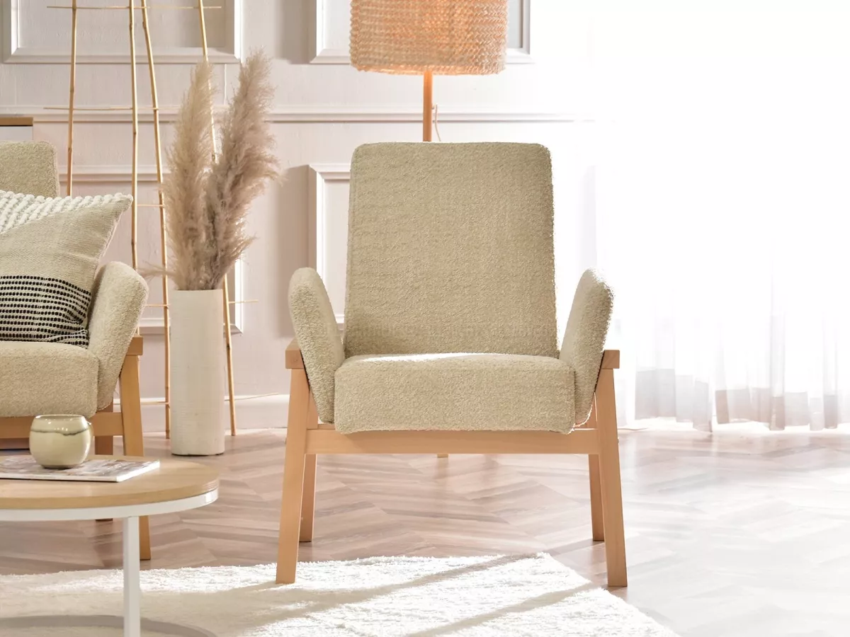 Čalouněné křeslo EMERY se skvěle hodí do moderních interiérů, kterým dodá jemnost a eleganci. Dřevo poskytuje stabilitu, odolnost a pocit bezpečí při používání.