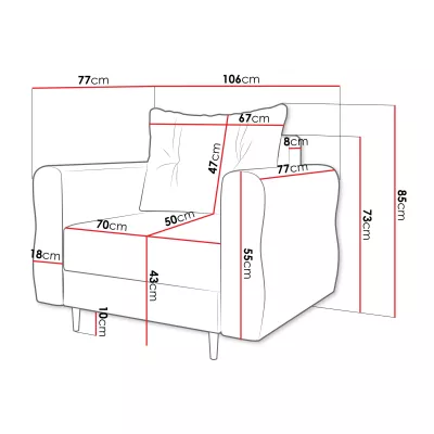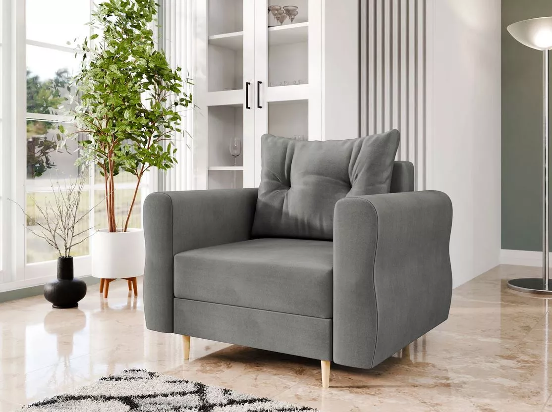 Křeslo do obývacího pokoje EXETER přímo vybízí k odpočinku. Pohodlný sedák a zaoblené područky vám zajistí maximální relaxaci po dlouhém a náročném dni. Pro ještě větší komfort je doplněno útulným opěrným polštářem, který poskytne vašim zádům dokonalou oporu a potěšení.