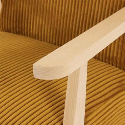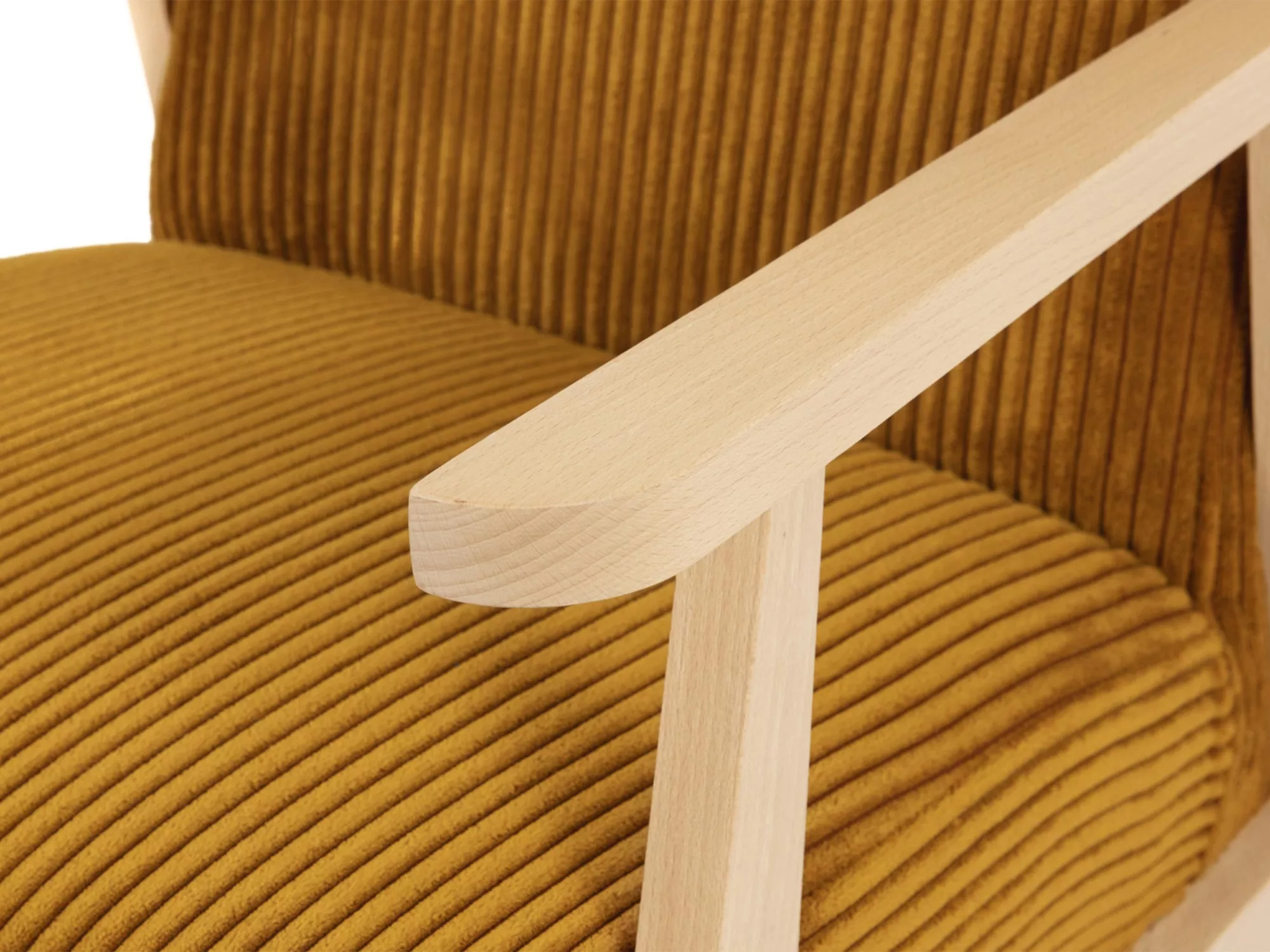 Křeslo VARGON svým tvarem i čalouněním připomíná modely z 60. let minulého století. Potahová manšestrová látka je mimořádně příjemná na dotek a spolu s pohodlným opěradlem a sedákem má na svědomí mimořádný komfort při užívání.