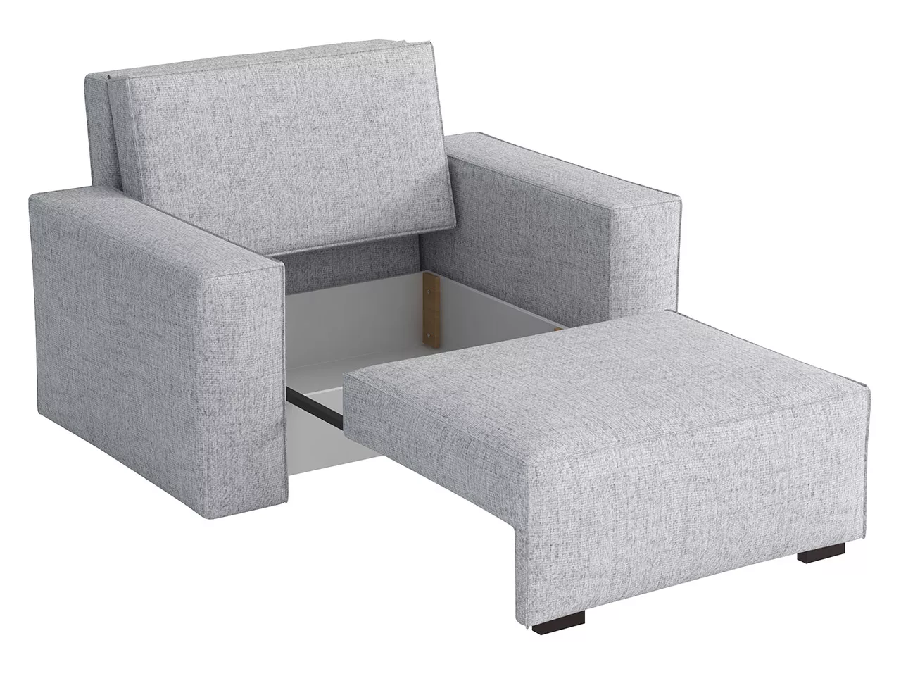 Křeslo NICKO spojuje eleganci, praktičnost a maximální pohodlí. Díky rozkládací funkci snadno přeměníte křeslo na lůžko pro hosty nebo pro chvíle odpočinku. Úložný prostor pod sedákem je ideální pro uschování přikrývek, polštářů a dalších nezbytností, které chcete mít vždy po ruce.