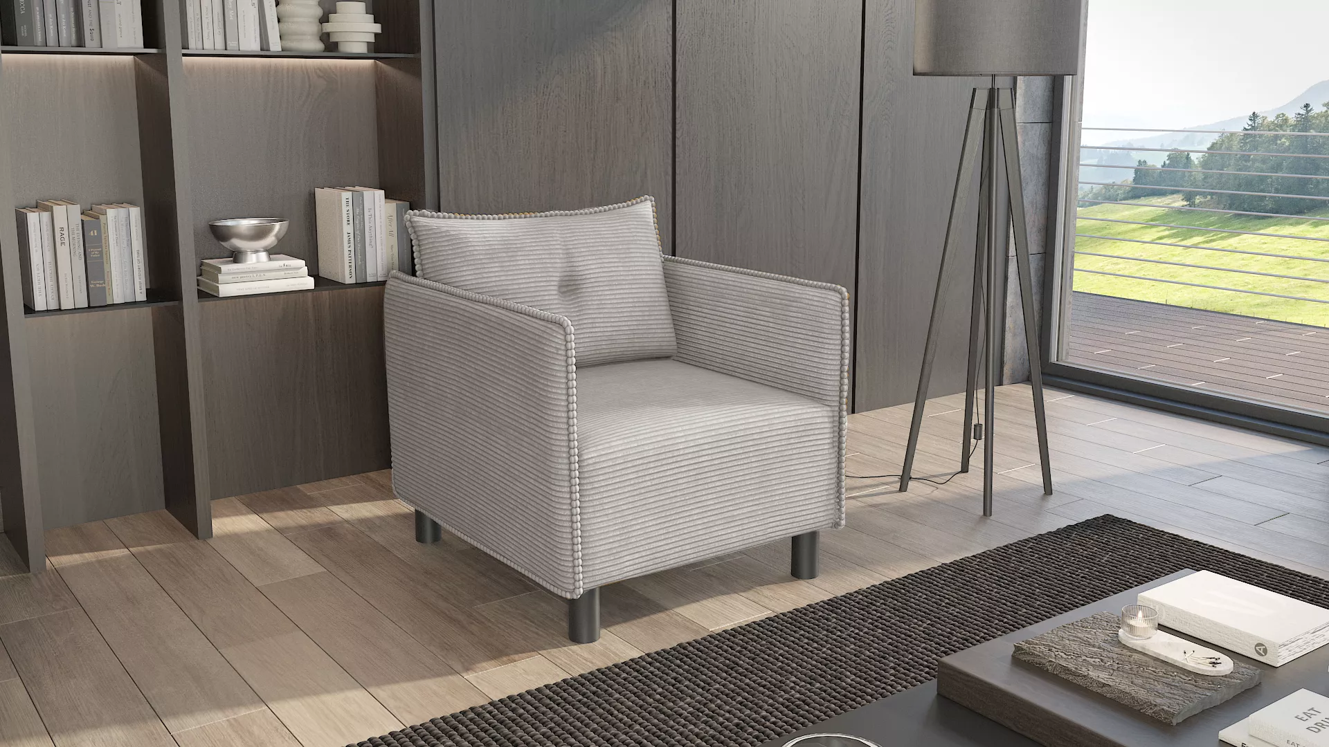 Křeslo MAELLA díky svým vysokým nožkám dodá místnosti pocit lehkosti a elegance. Křeslo je potažené látkou velmi příjemnou na dotek, což ještě více zpříjemní jeho každodenní používání.