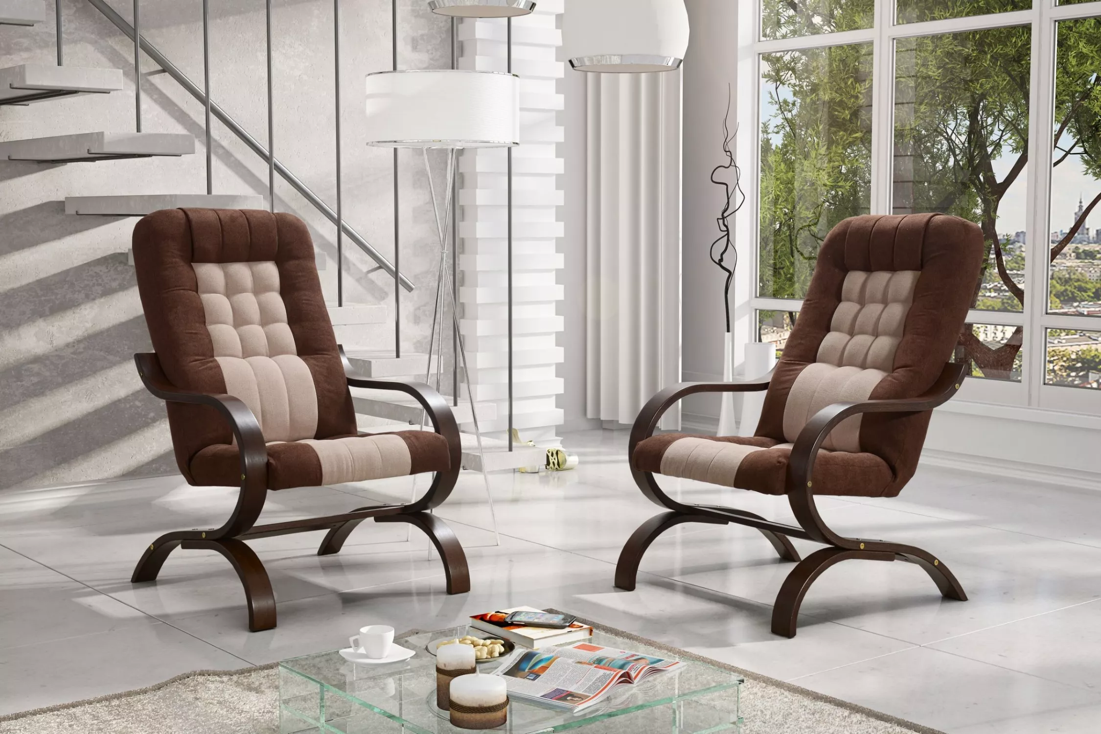 Čalouněné křeslo INGRIDA - hnědé / béžové / ořech