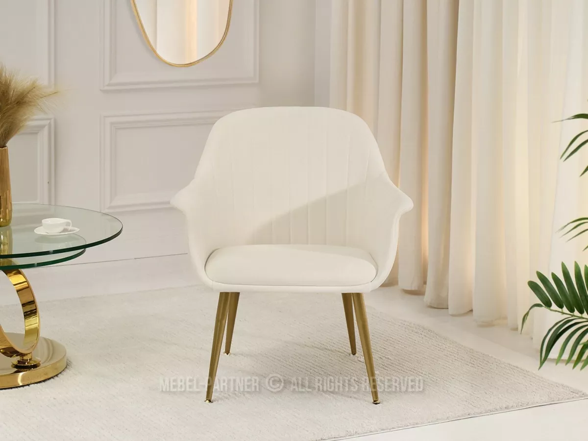Čalouněné křeslo RAUL vytváří dokonalé místo pro trávení volného času s knihou nebo čajem. Celkový dojem doplňuje stabilní kovová základna.