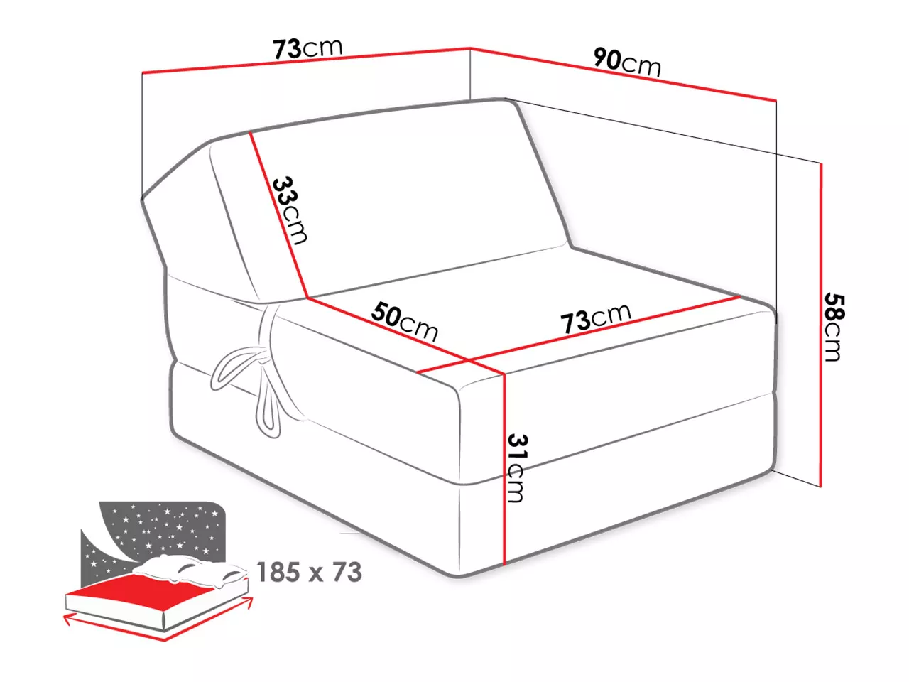 - 73 x 185 cm