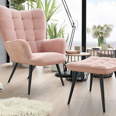 Stylové křeslo ušák s taburetem STOVIK - růžové