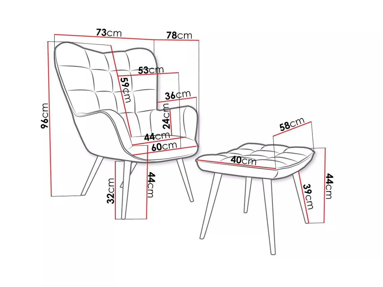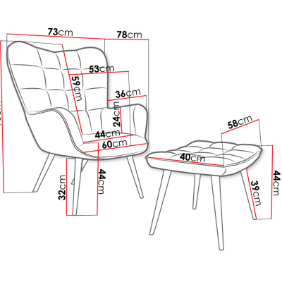 - křeslo: 78/96/73 cm