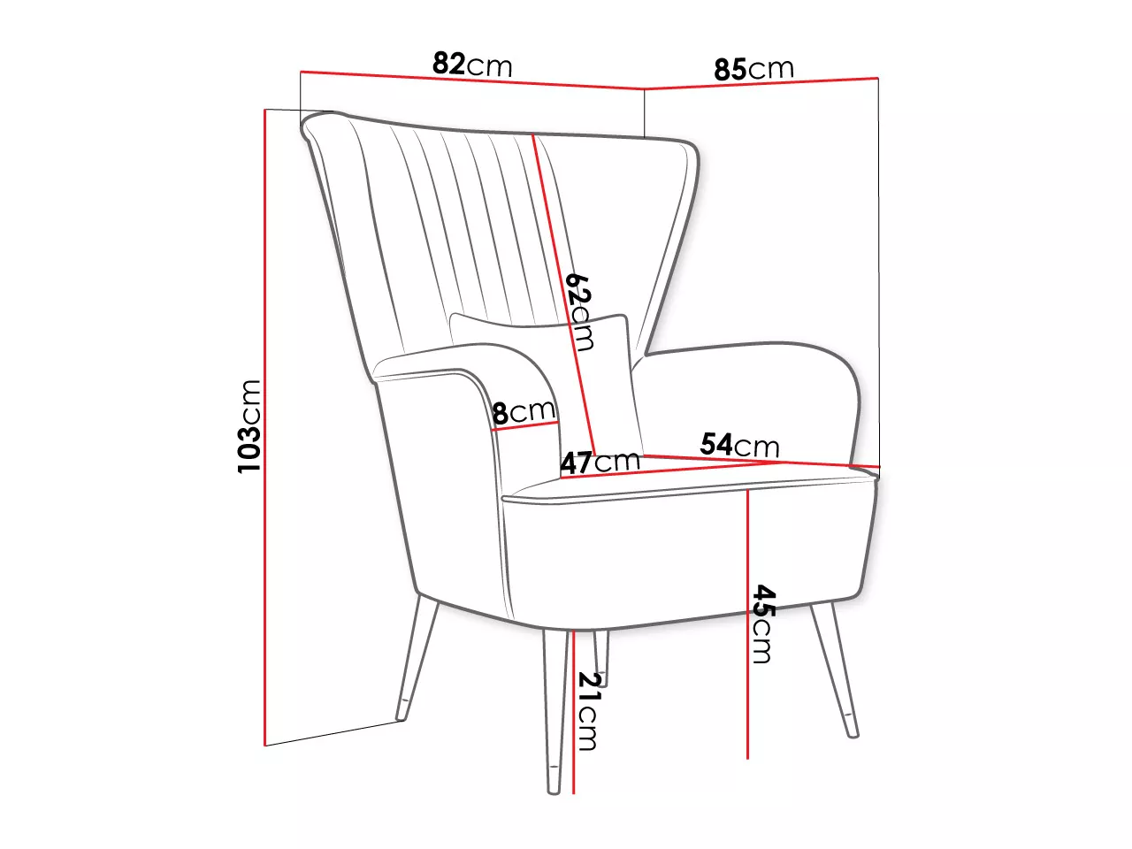 Křeslo SHABA má dokonale tvarované opěradlo s mírně zaoblenými konci a hlubokým sedákem, které vám zaručí vysoký komfort při relaxaci. Ozdobnými prvky křesla jsou vysoké kovové nožky a jemné prošívání.