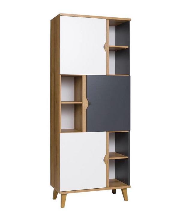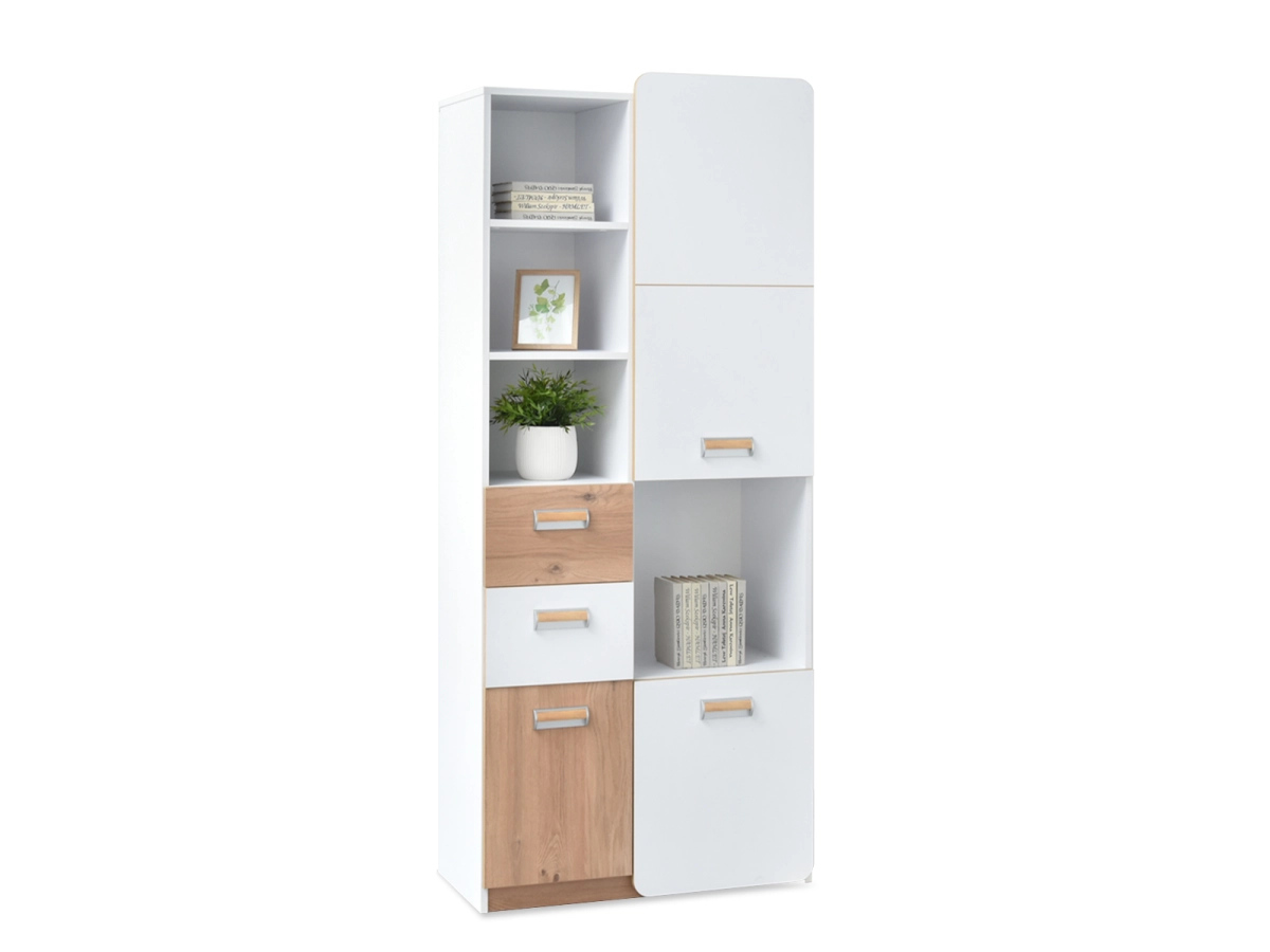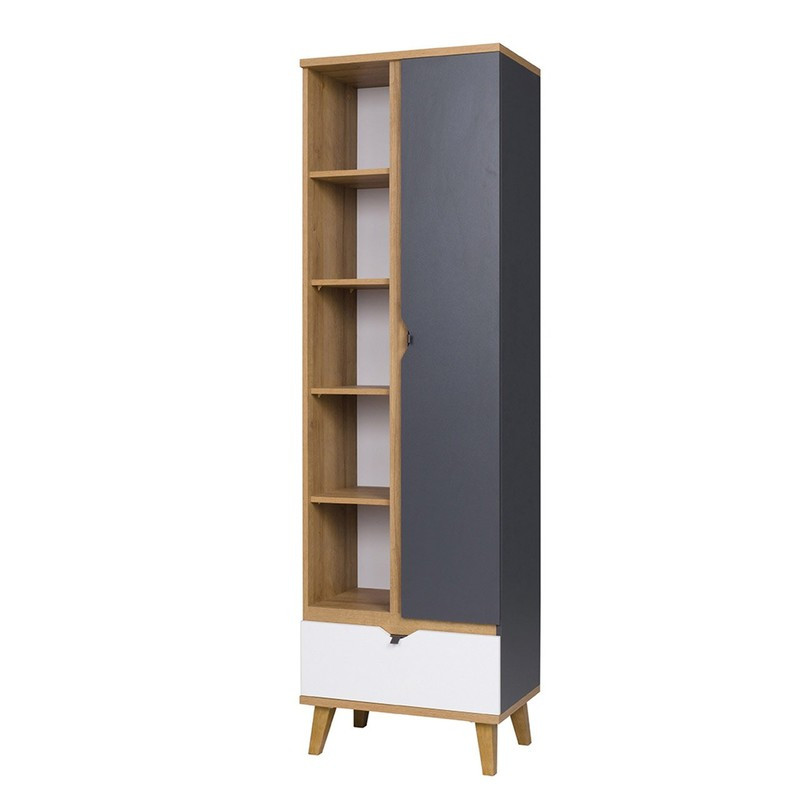 Šuplíková skříňka LAILI - šířka 60 cm, světle šedá / dub artisan