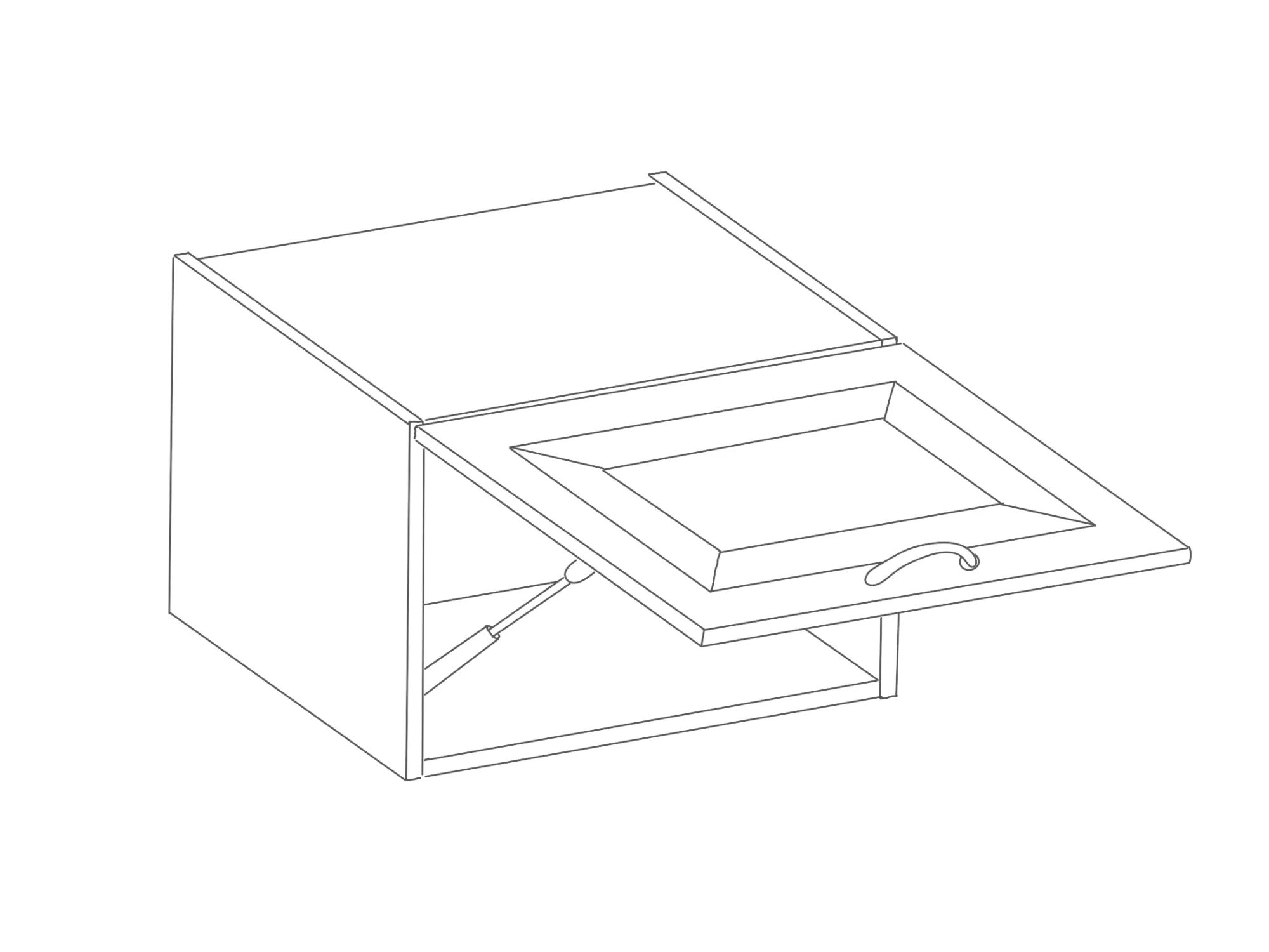 Digestořová skříňka je nezbytnou součástí každé kuchyně, zejména té, kde se každý den vaří. Přední otevírání směrem nahoru umožňuje přístup k věcem uloženým uvnitř.