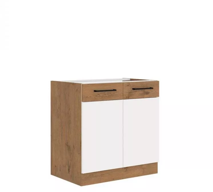 Kuchyňská skříňka pod dřez 80 cm ZHILAN - dub lancelot / lesklá bílá