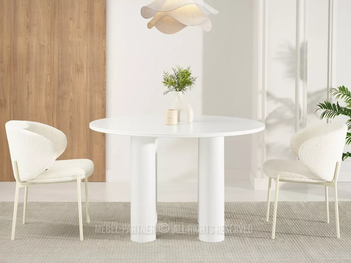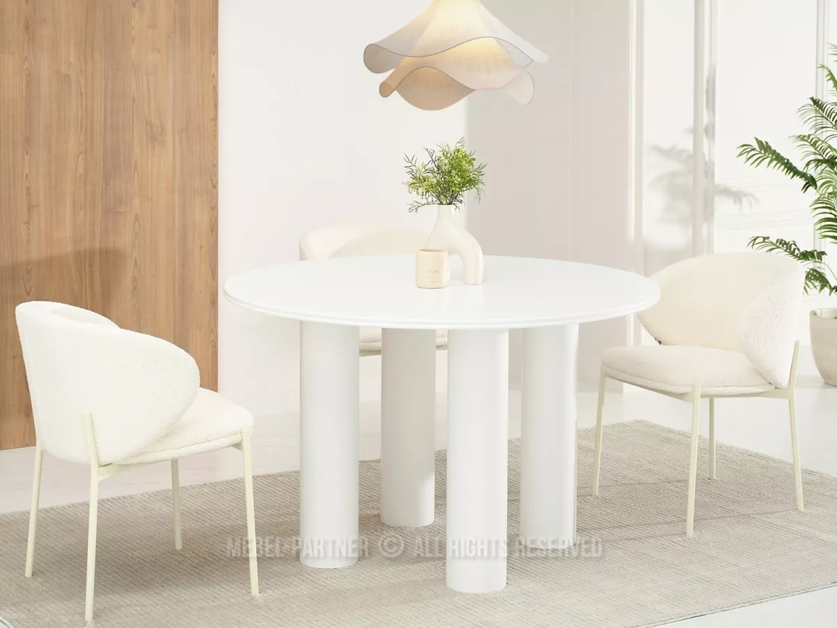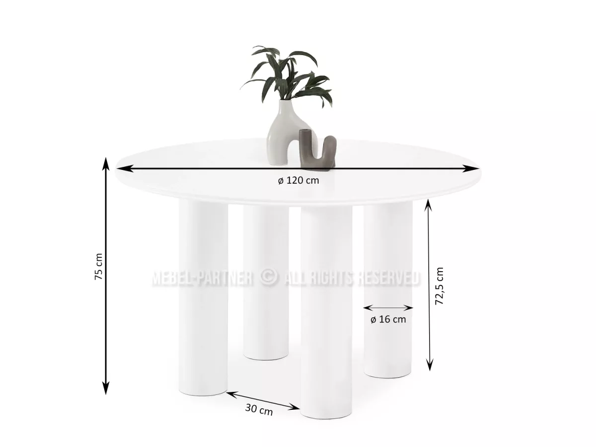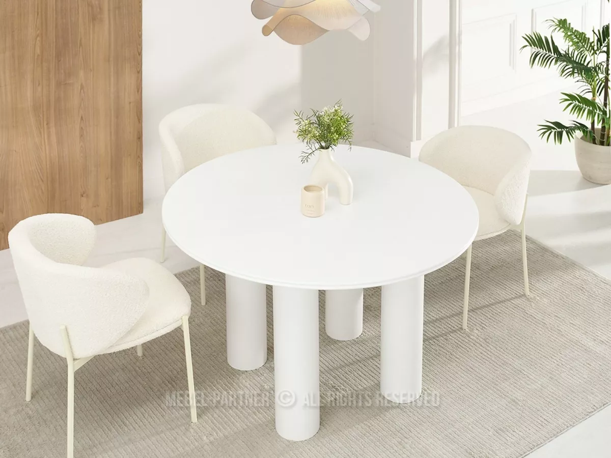 Kulatý jídelní stůl CASEY se svým zpracováním a designem hodí do každé skandinávské a minimalistické jídelny nebo kuchyně. Stabilitu stolu zajišťují 4 pevné válcovité nohy.