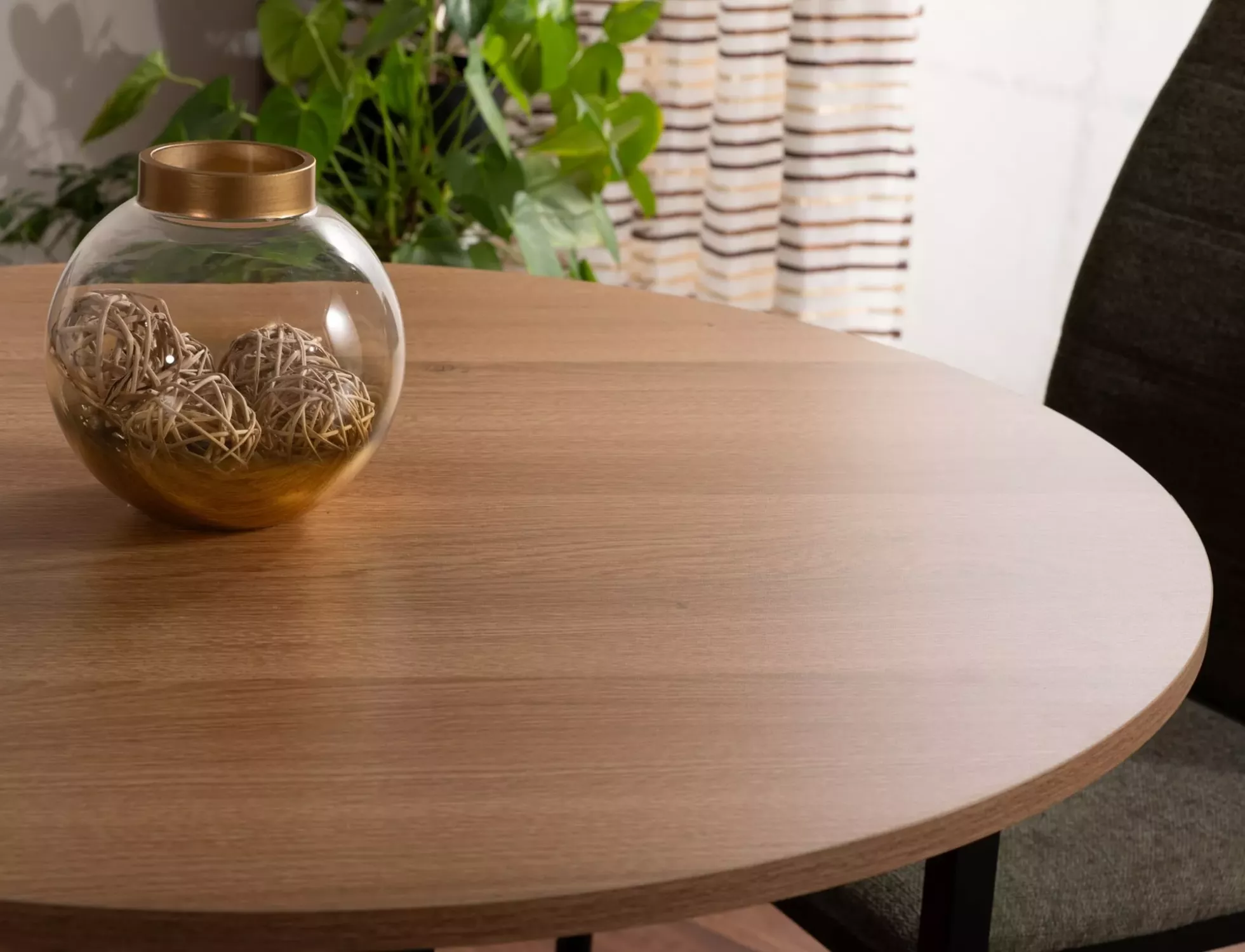 Malý kulatý jídelní stůl PALMIRO se hodí do všech moderních a loftových jídelen. Kvalitu zpracování podtrhuje kovová konstrukce.