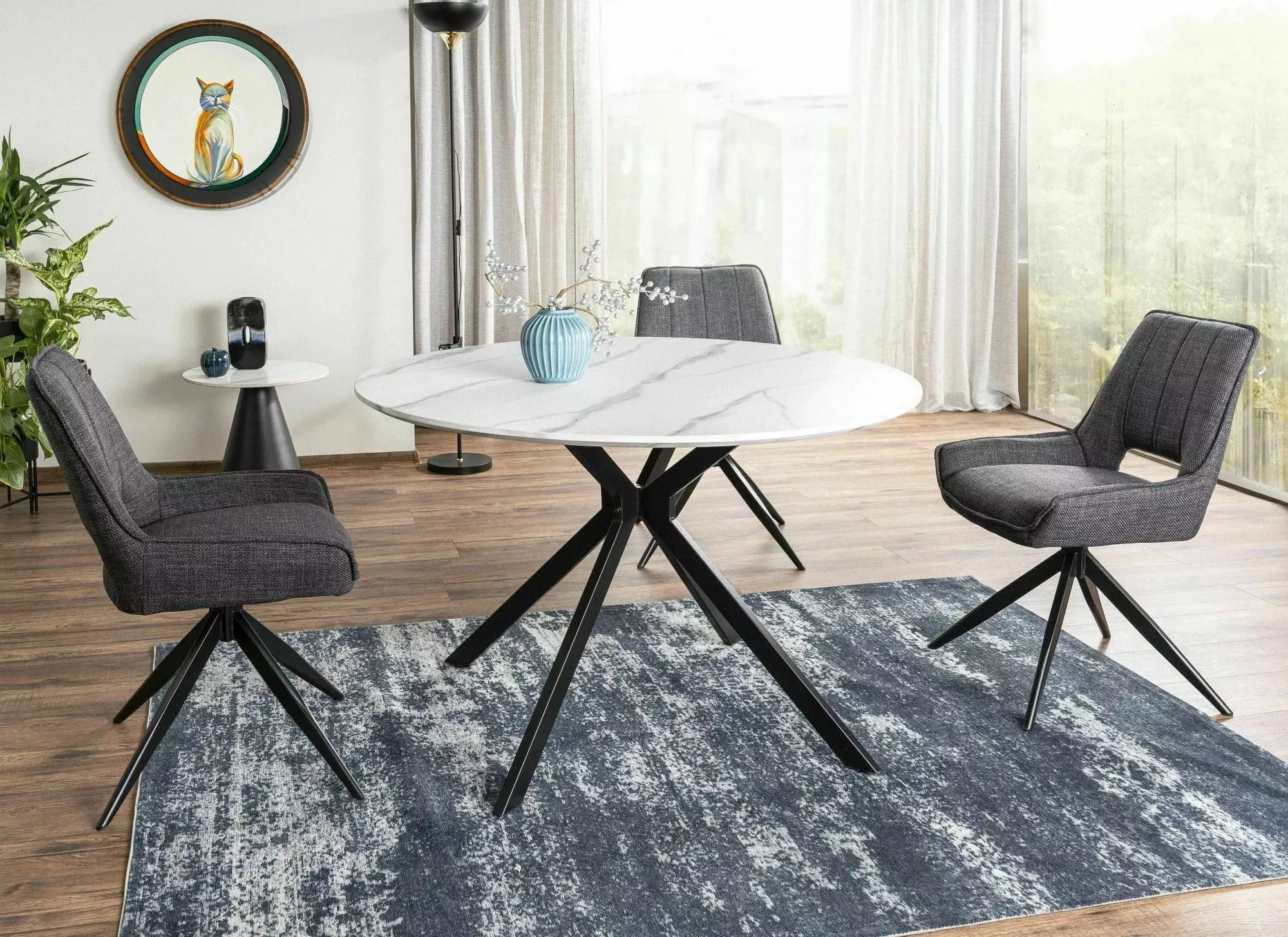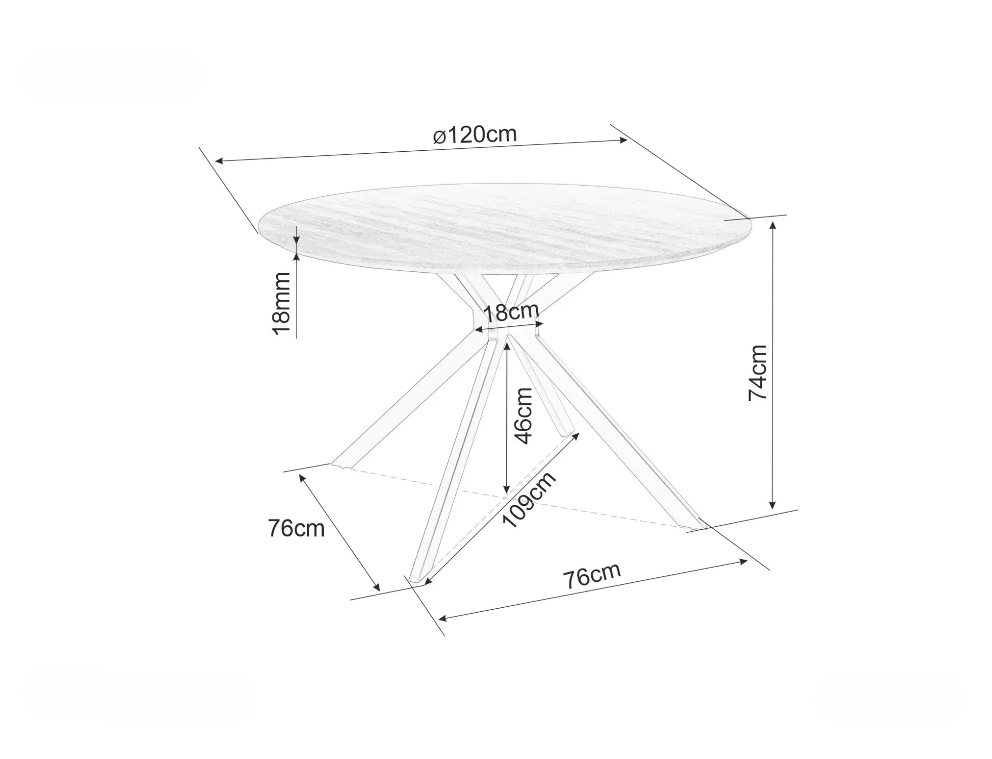 Kulatý jídelní stůl ATTILA upoutá zajímavou podstavou. Hodí se do všech moderních a loftových jídelen. Kvalitu zpracování podtrhuje kovová konstrukce.