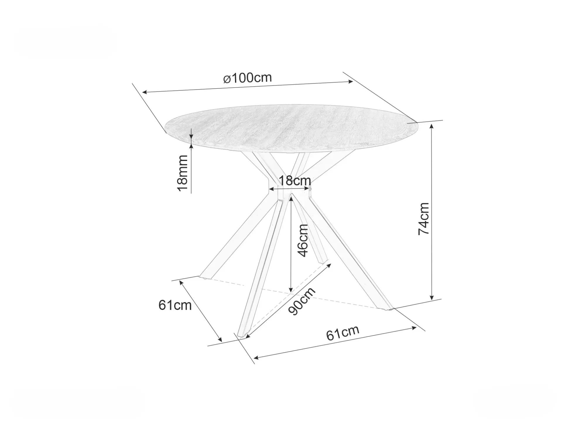 Malý kulatý jídelní stůl ATTILA upoutá zajímavou podstavou. Hodí se do všech moderních a loftových jídelen. Kvalitu zpracování podtrhuje kovová konstrukce.