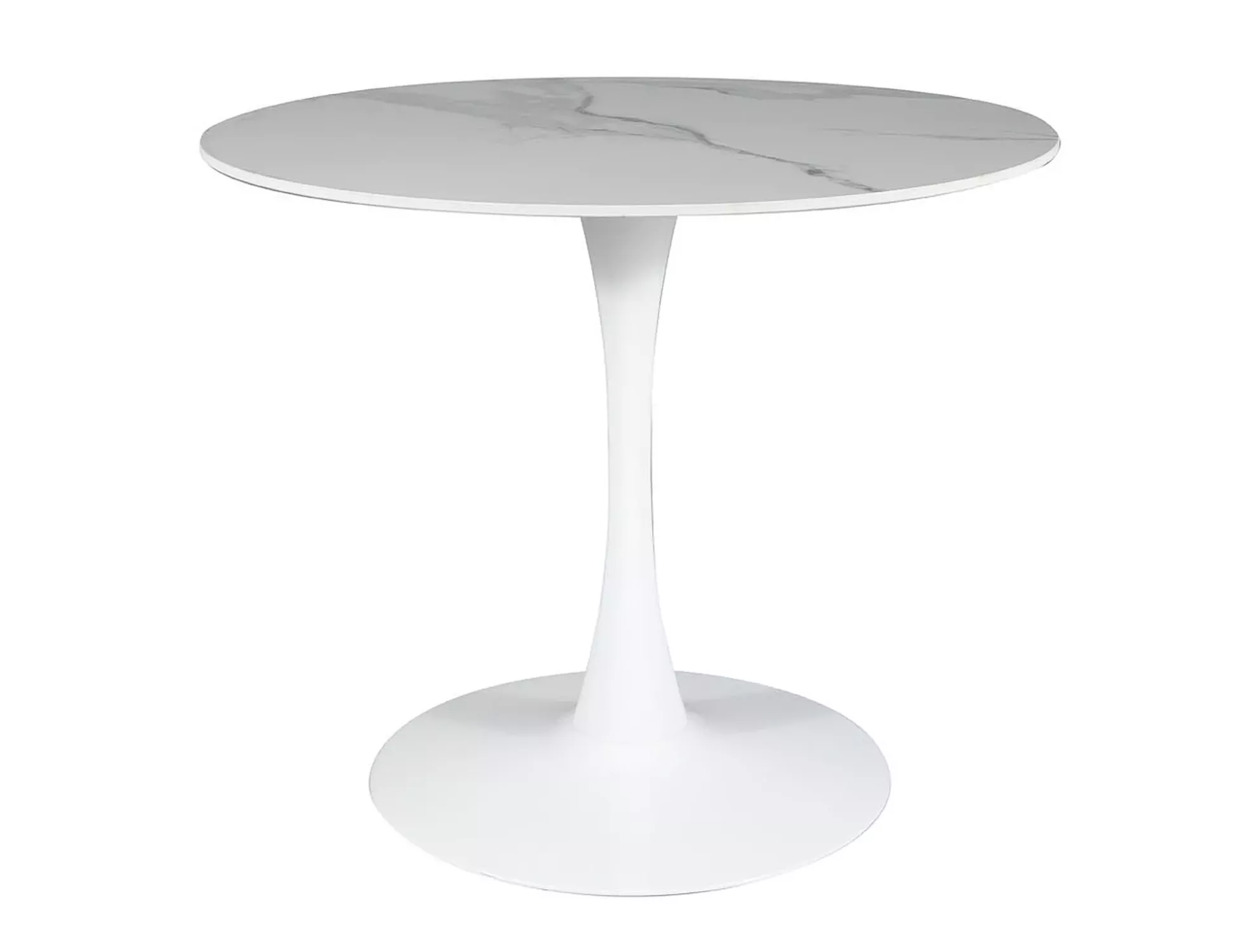 Kulatý jídelní stůl BRODIE - bílý mramor / bílý