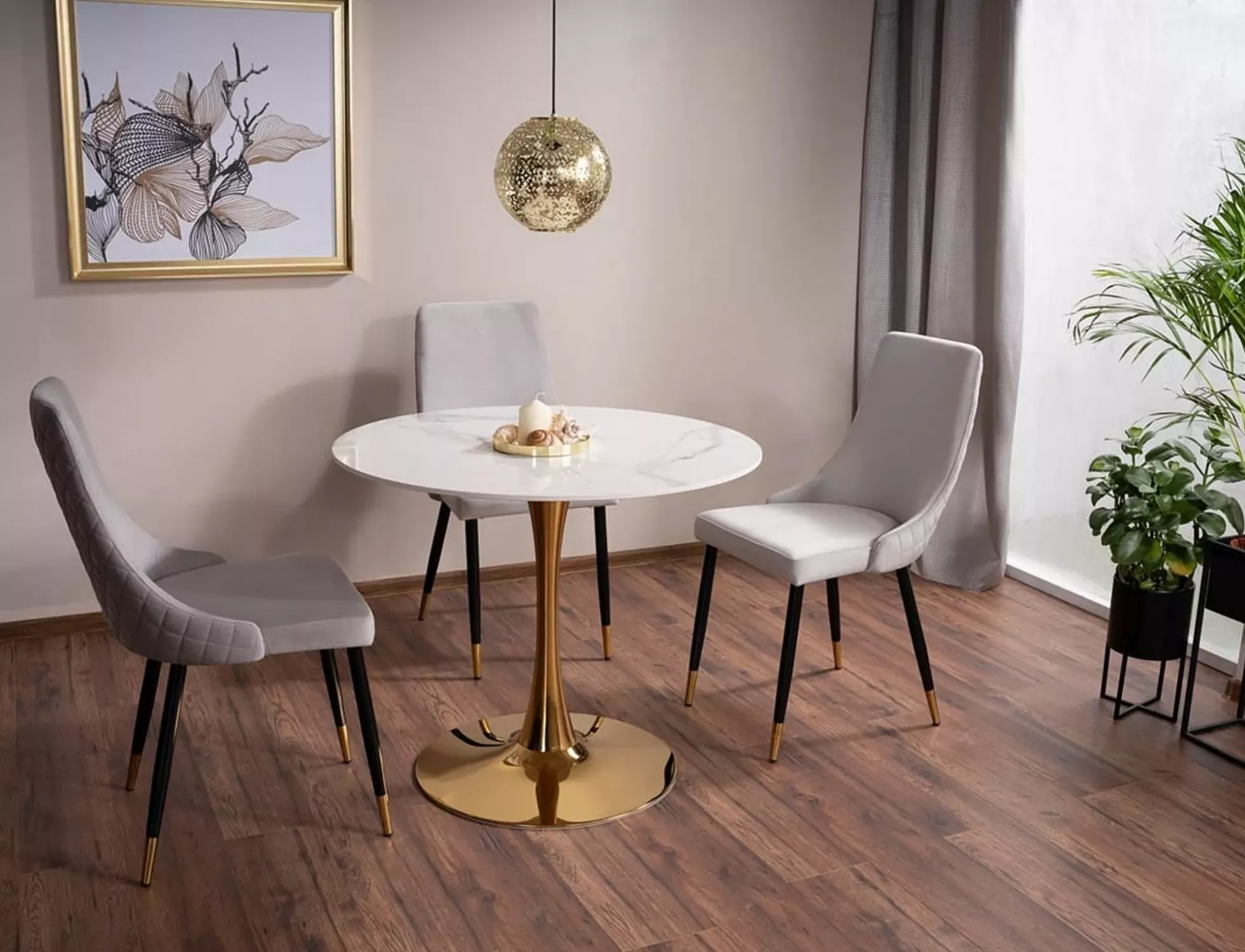 Kulatý jídelní stůl BRODIE - bílý mramor / zlatý