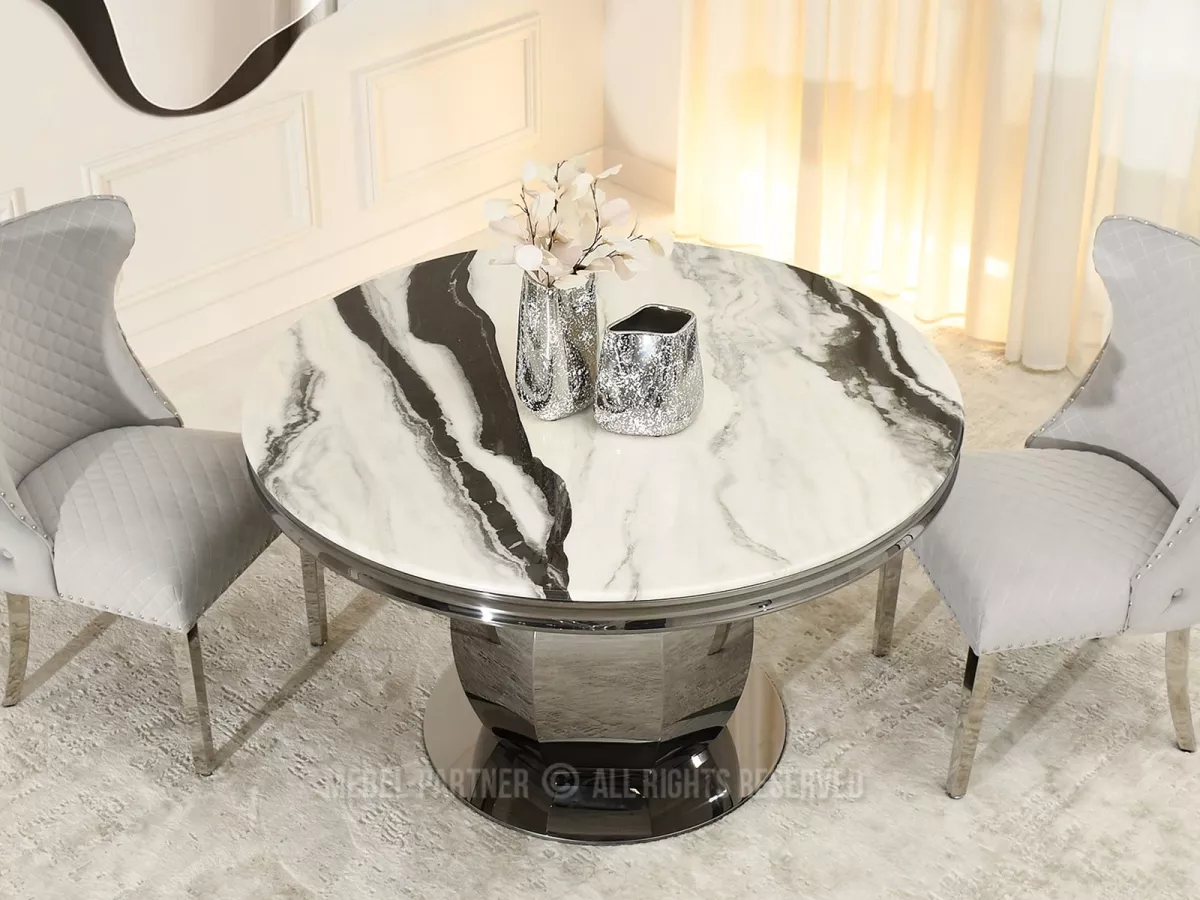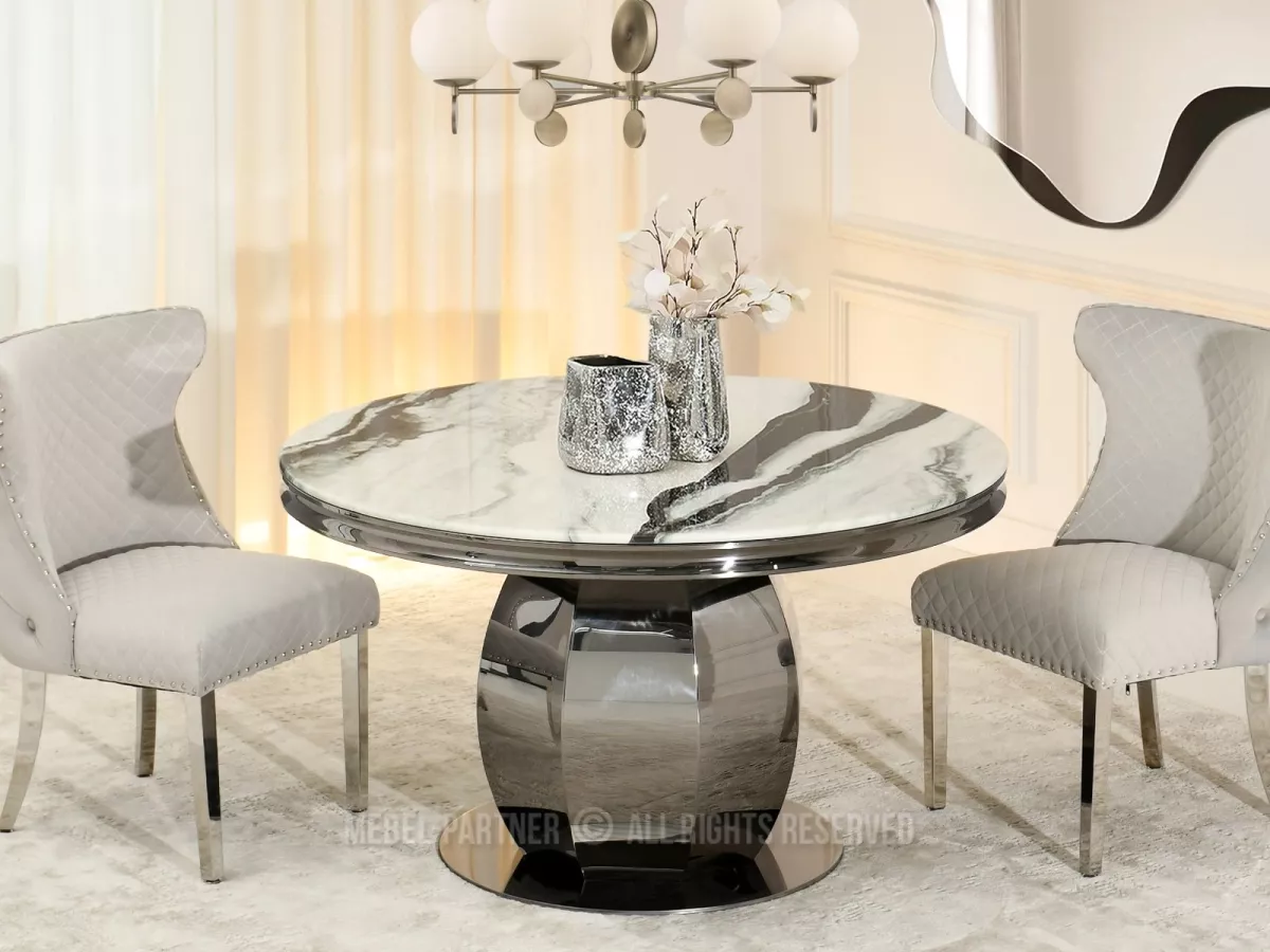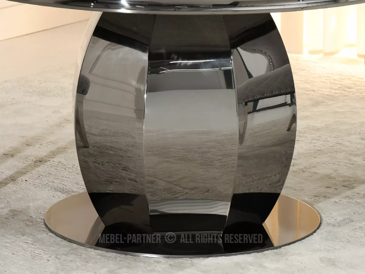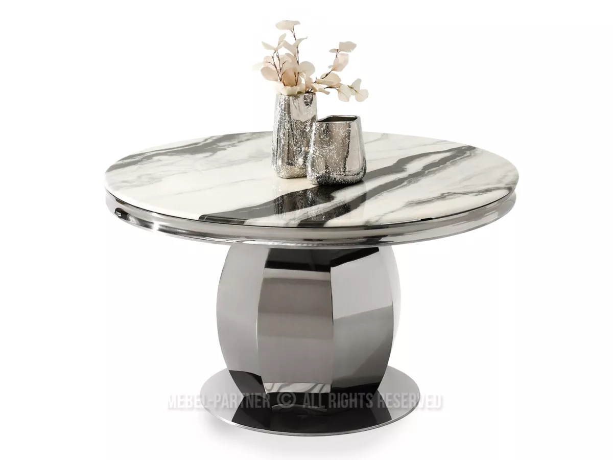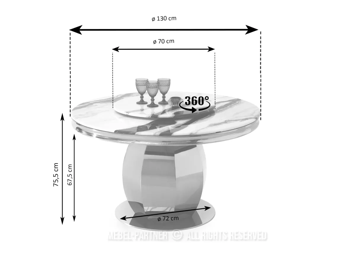 Kulatý jídelní stůl GEMMO skvěle kombinuje nadčasovou eleganci s funkčností. Stůl disponuje otočným tácem, který v případě potřeby můžete odebrat. Svou lesklou podstavou vnese do každé jídelny nebo kuchyně nádech elegance a luxusu.