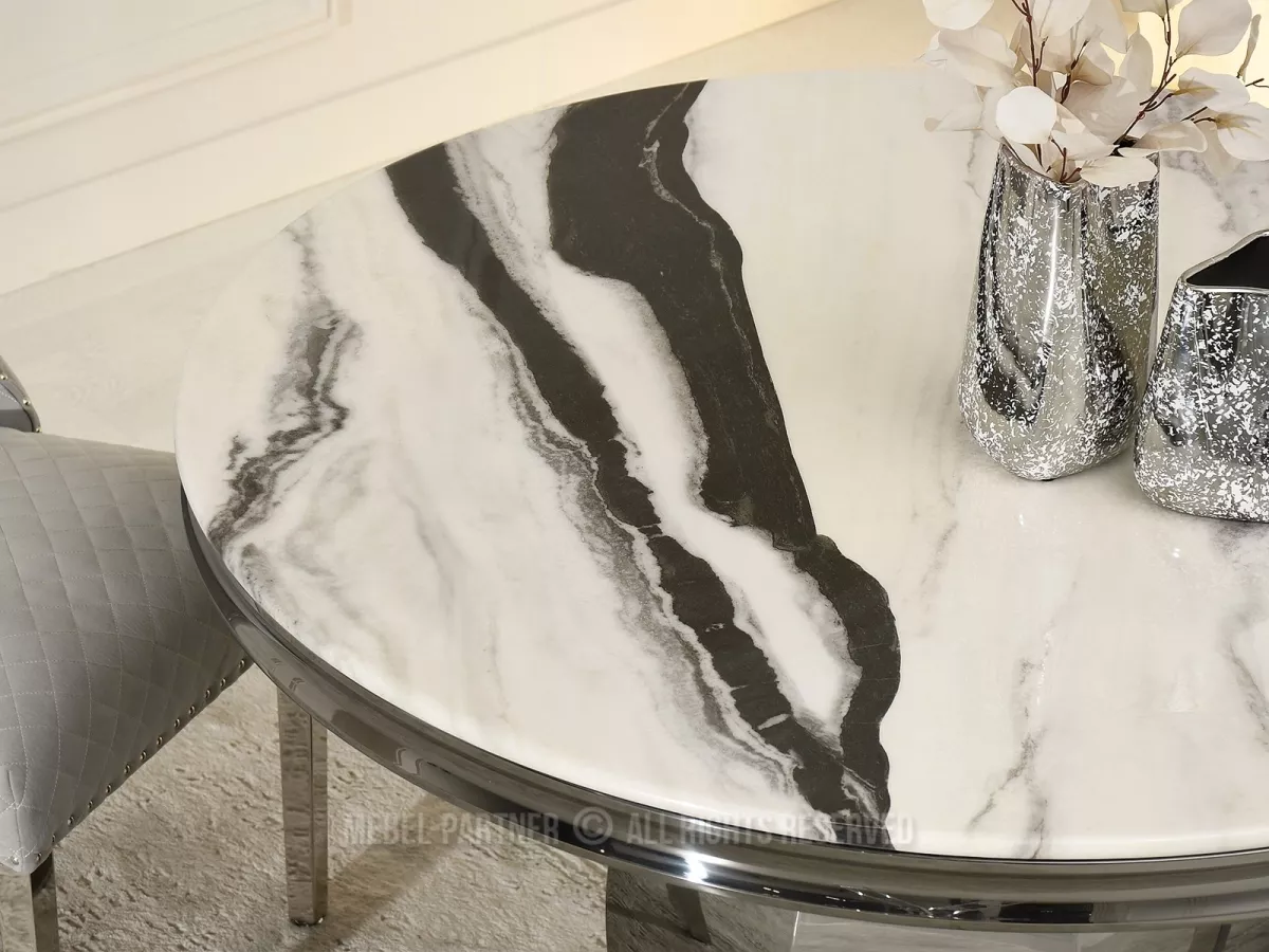 Kulatý jídelní stůl GEMMO - černobílý mramor / černý