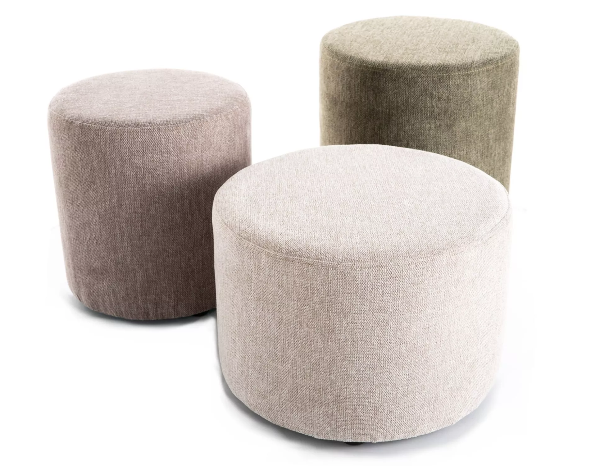 Kulatý taburet DOLORES 1 skvěle poslouží jako další místo k sezení, podnožka nebo stylový doplněk interiéru. Jeho kulatý tvar a příjemná potahová látka zpříjemní každou chvíli odpočinku.