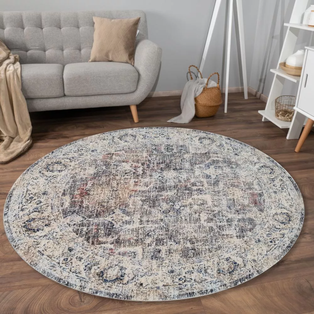 Kulatý koberec 100 cm FRANCO - béžový / modrý