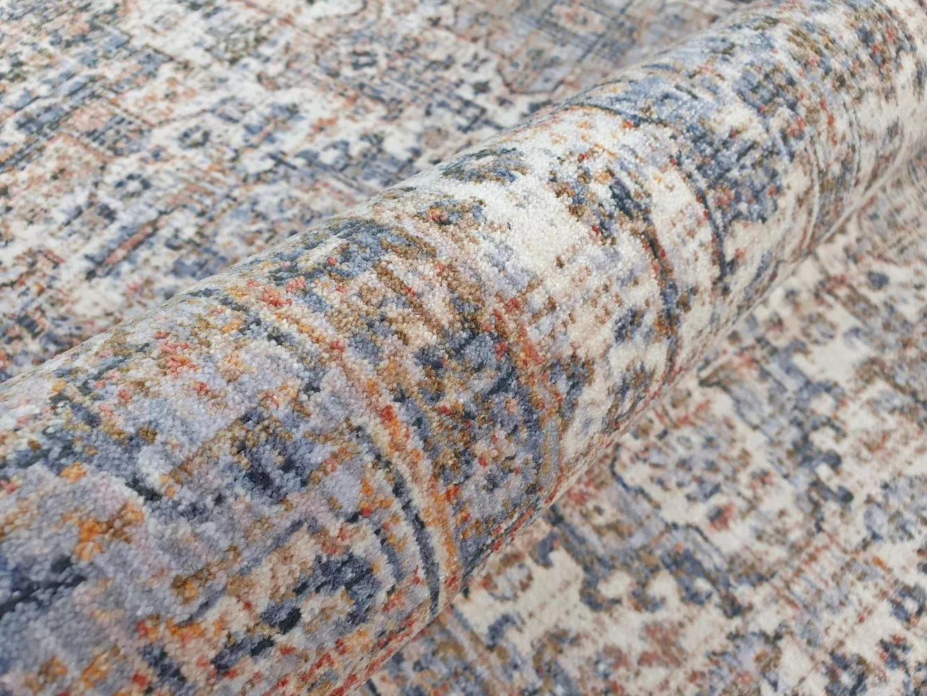 Kulatý koberec 120 cm FRANCO s ornamenty - modrý / béžový