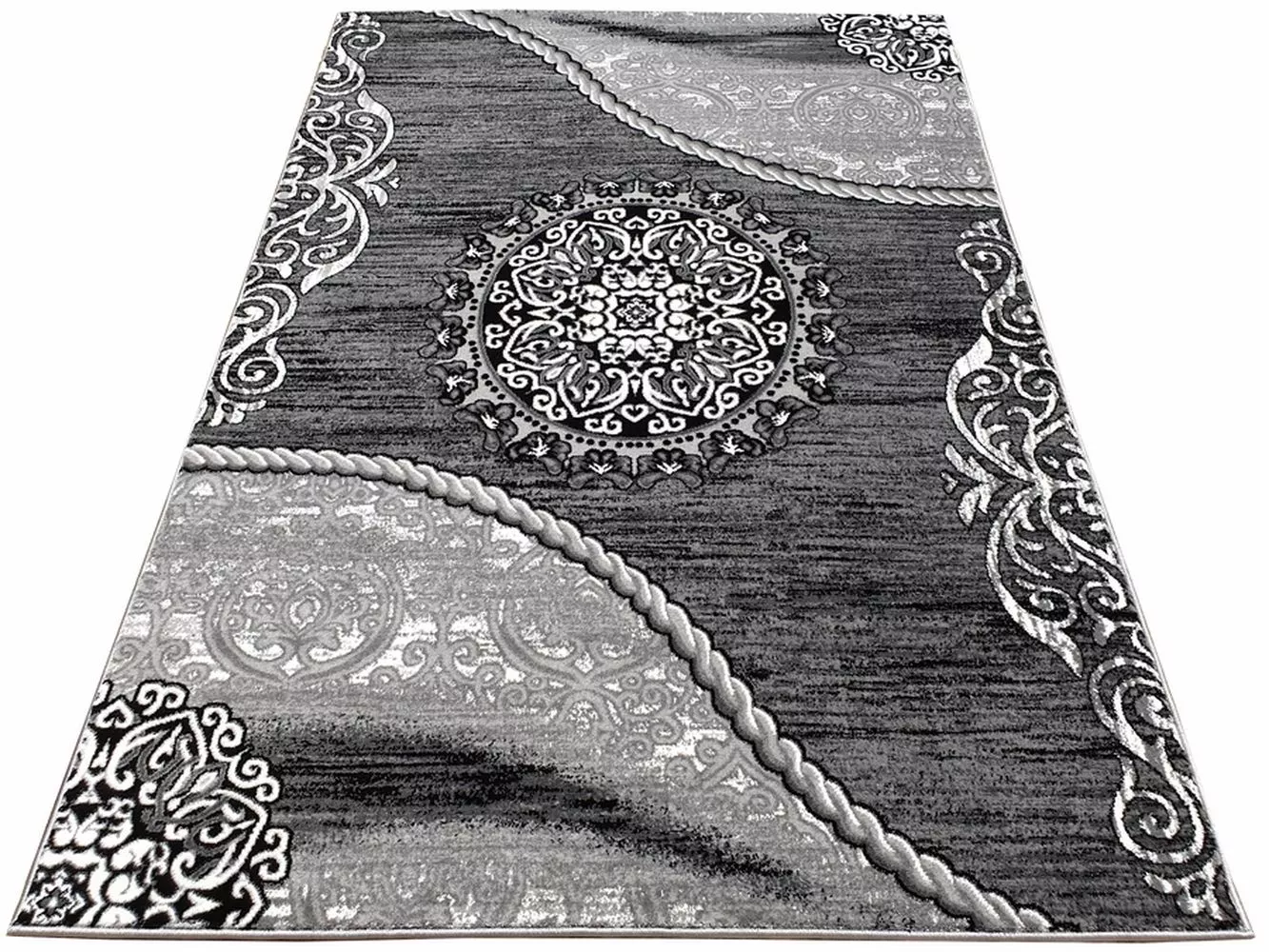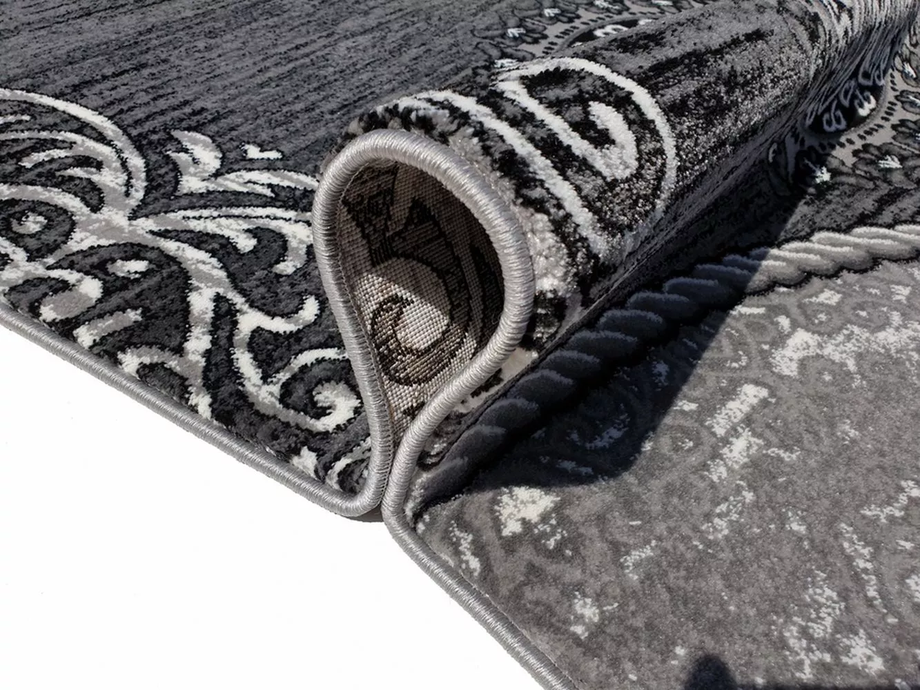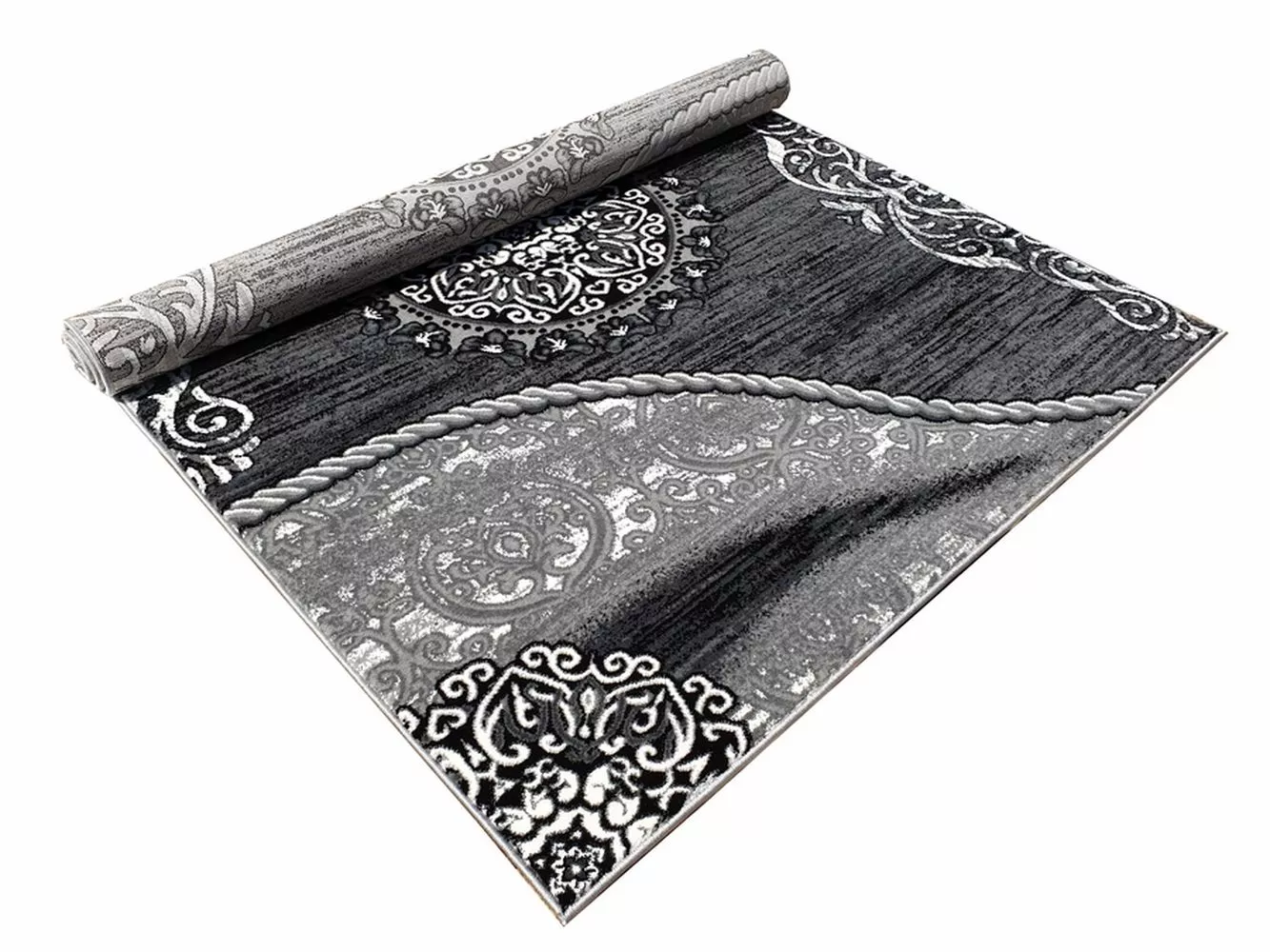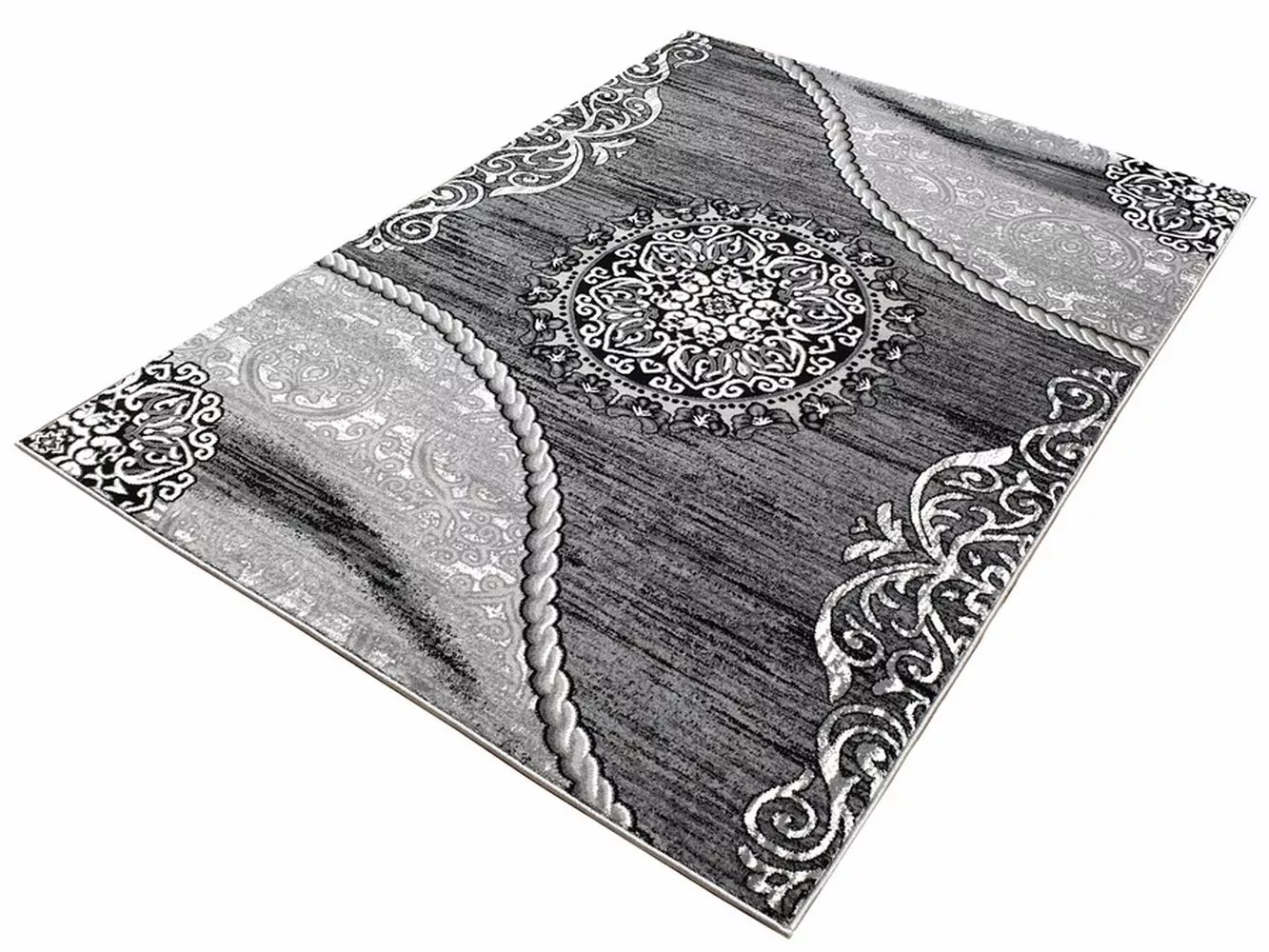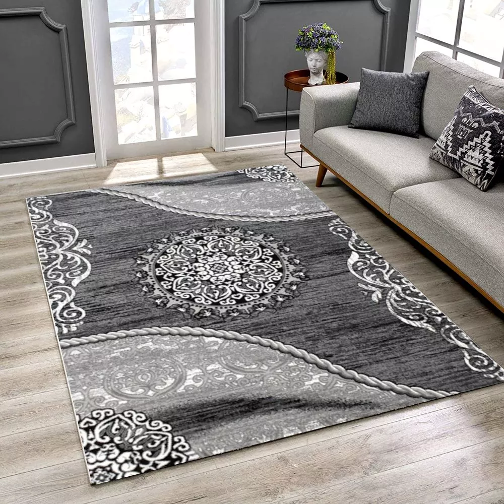Kusový koberec 200x290 cm DEMIAN s ornamenty - šedý / bílý