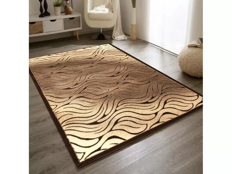 Moderní obdélníkový koberec 160x220 cm DEMIAN v hnědých odstínech vnese do interiéru harmonii a styl. Jemný vlnitý vzor připomíná pohyb písku či klidné vody. Koberec je antibakteriální, antistatický, měkký a lehce se udržuje. Díky vysoké hustotě vlasu je výborným tepelným izolantem.