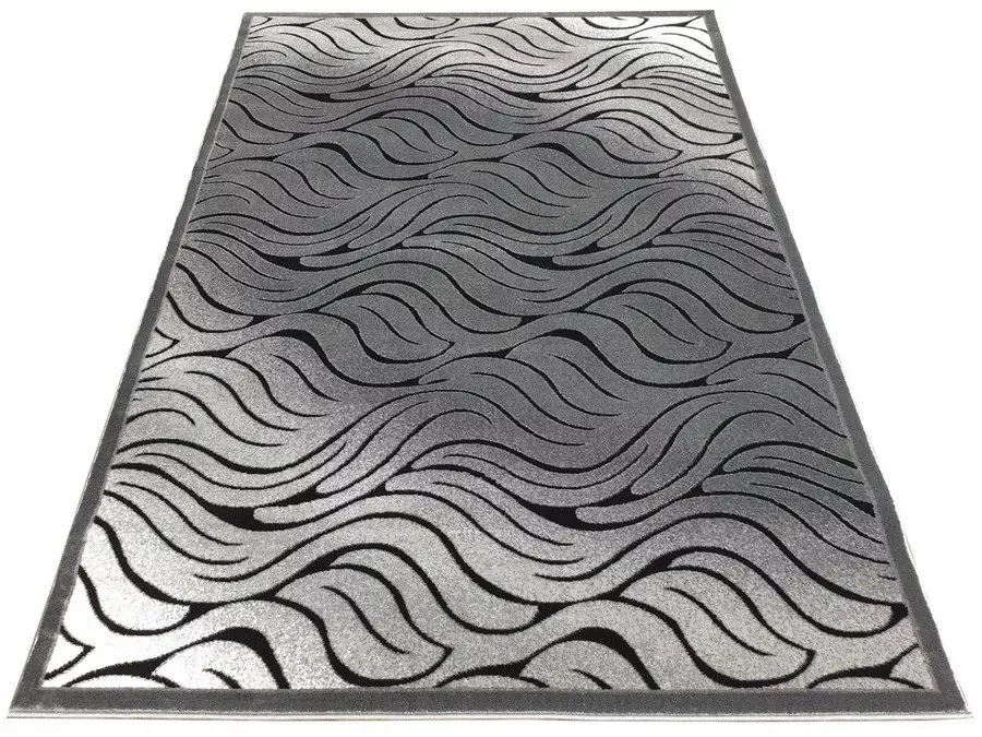 Moderní obdélníkový koberec 150x300 cm DEMIAN - šedý / černý