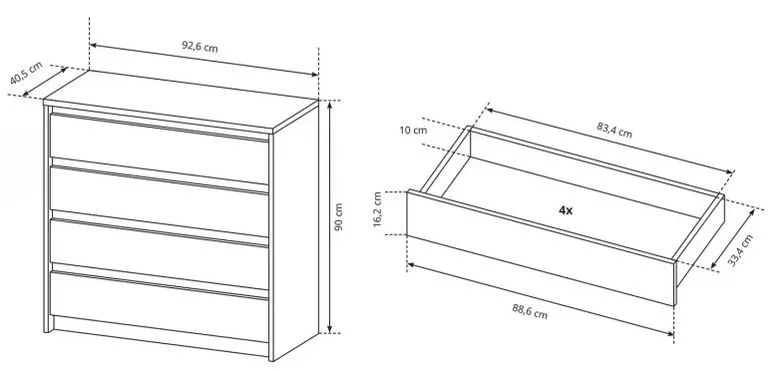 - šuplíková komoda: 92,6/90/40,5 cm
