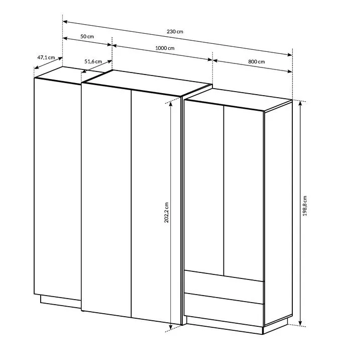- šatní skříň se zrcadlem: 230/198,8/47,1 cm