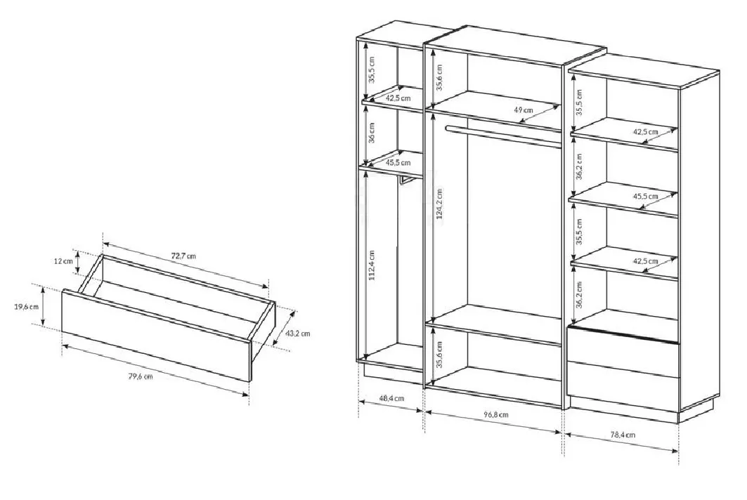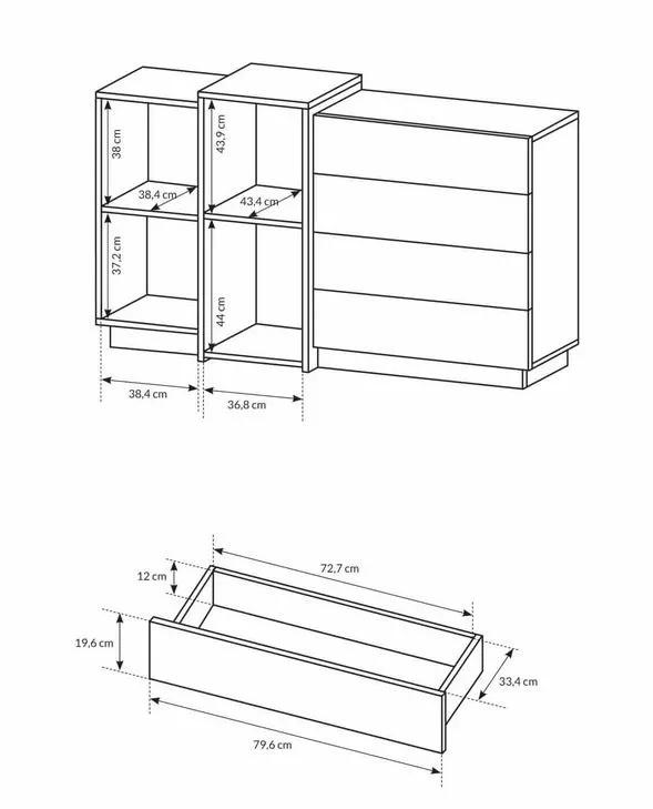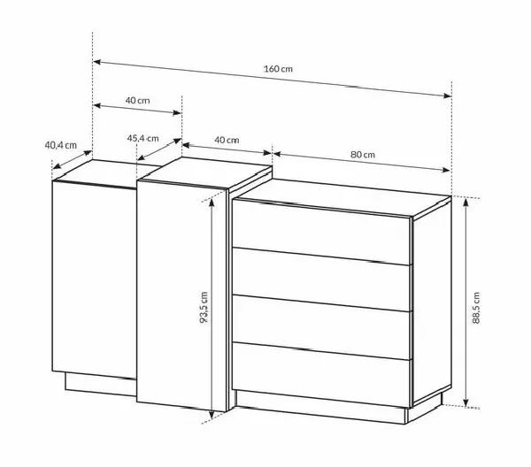- kombinovaná komoda: 160/93,5/45,4 cm