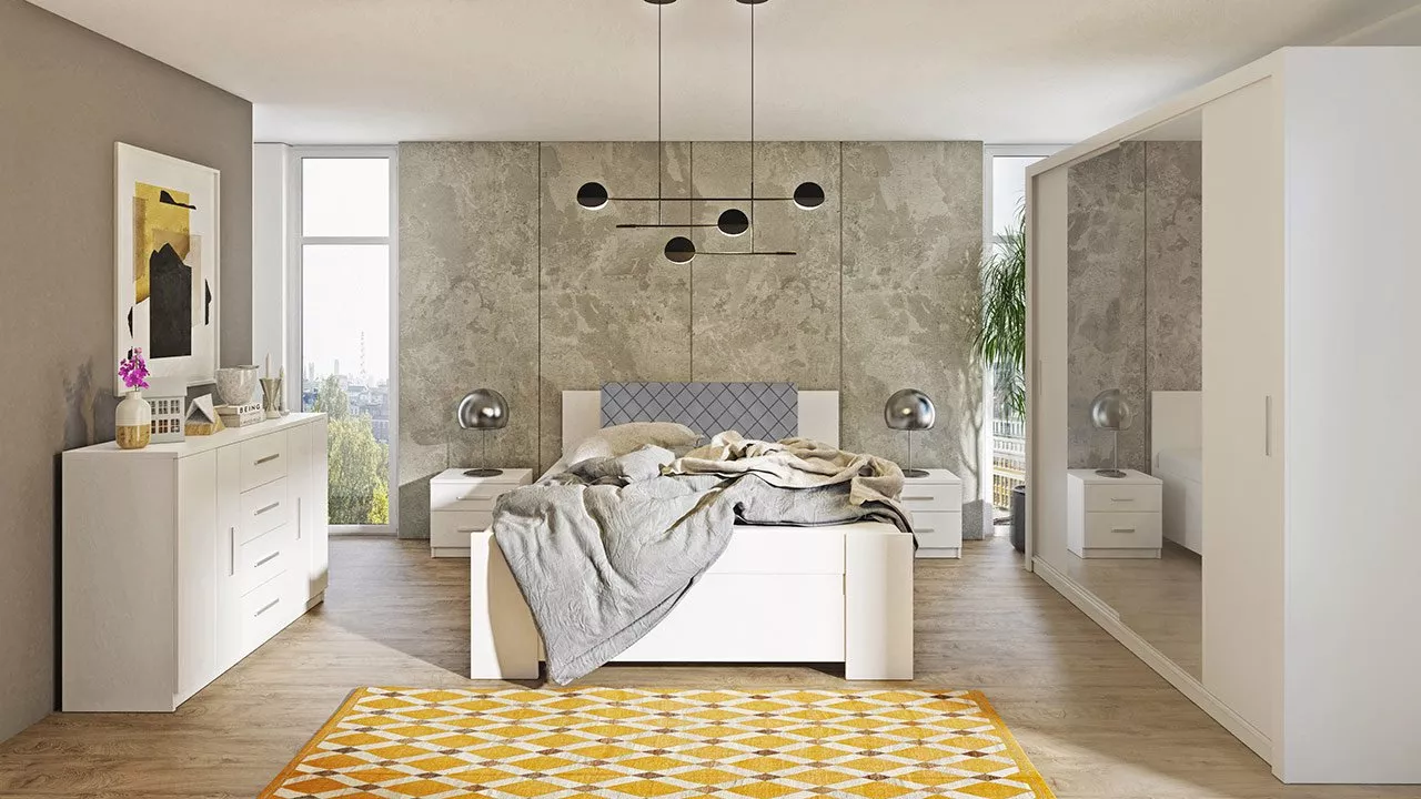 Ložnicová sestava s postelí 160x200 CORTLAND 5 - bílá / šedá ekokůže