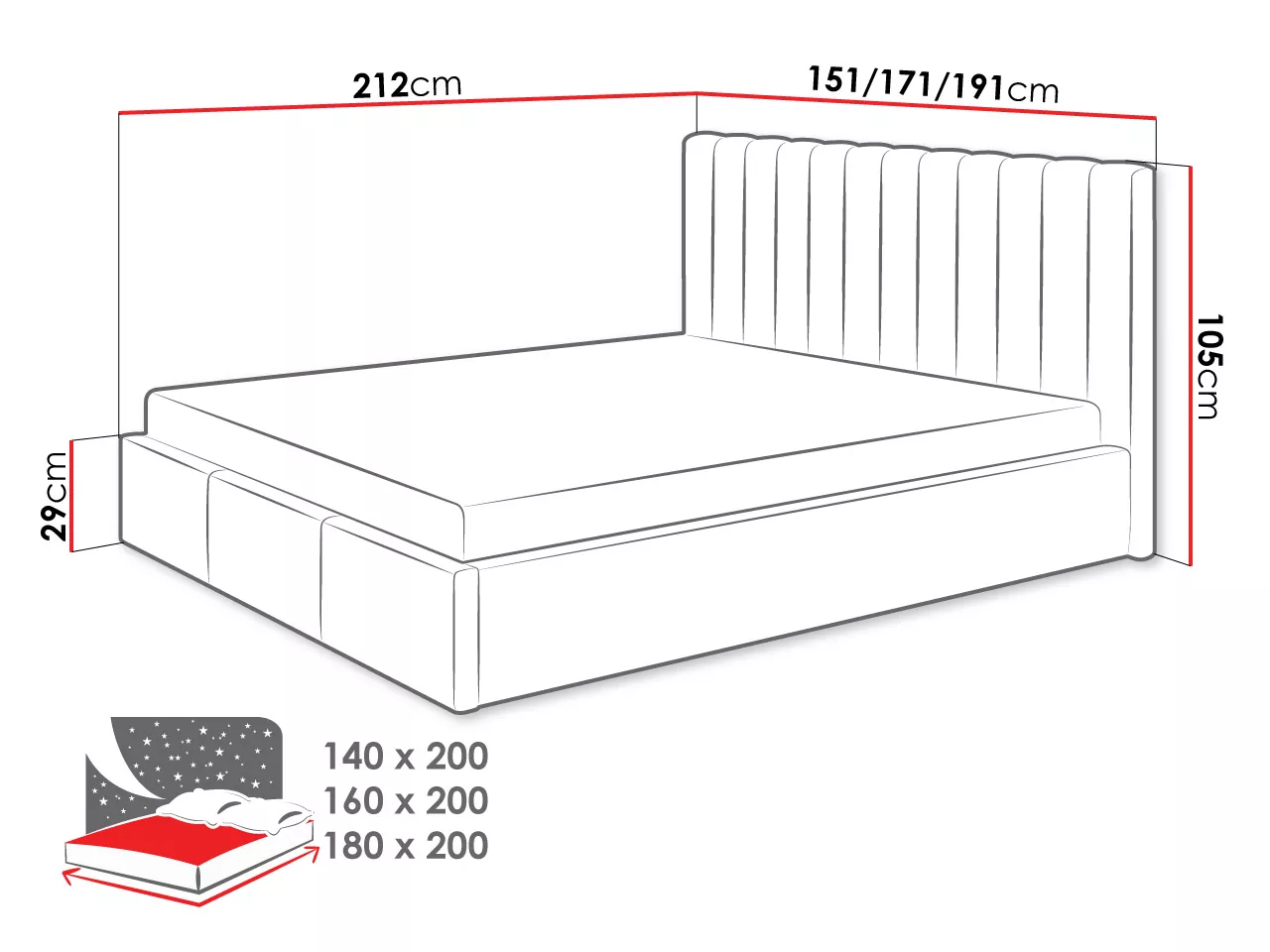 - ložná plocha: 180x200 cm