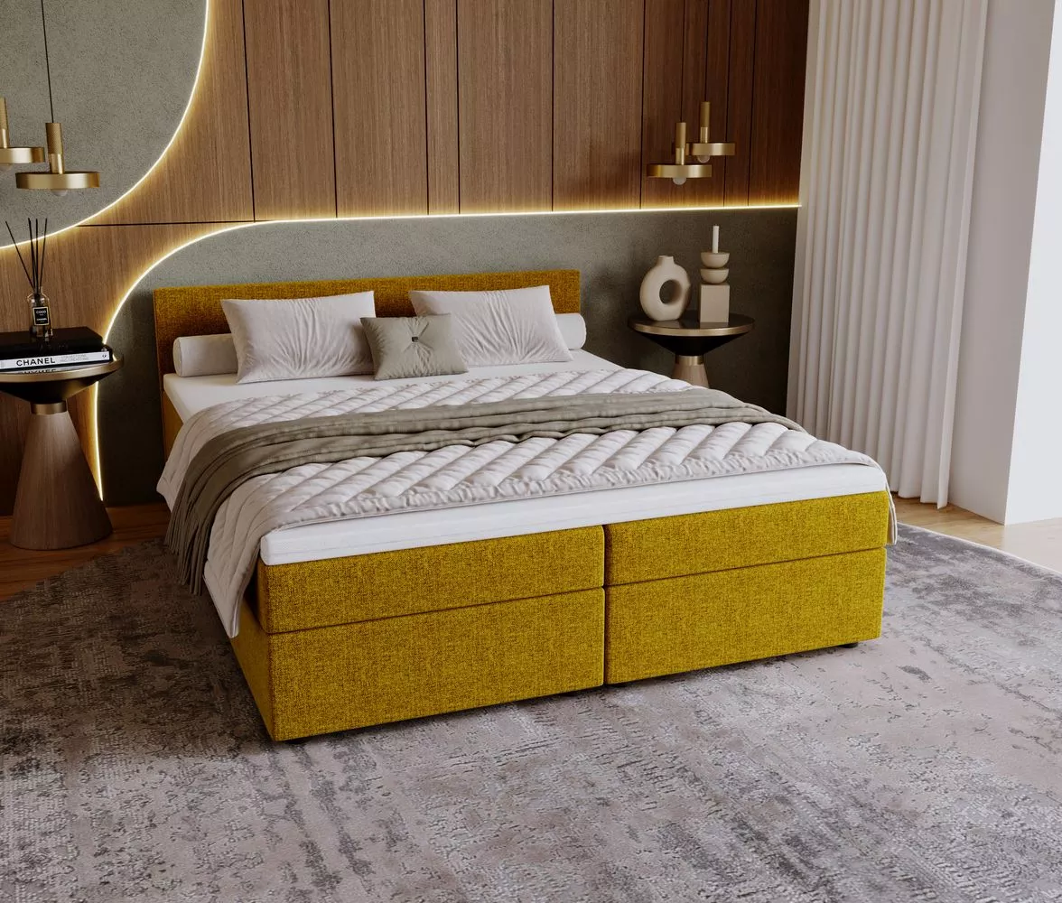 Čalouněná postel 140x200 SUVI 1 s úložným prostorem - hořčicová