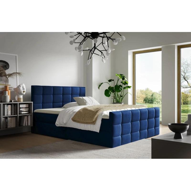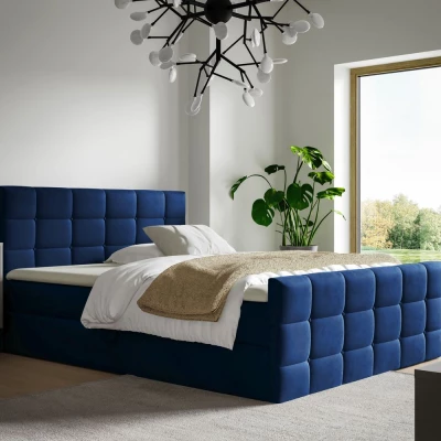 Manželská postel 140x200 DONIKA s úložným prostorem - tmavě modrá + topper ZDARMA