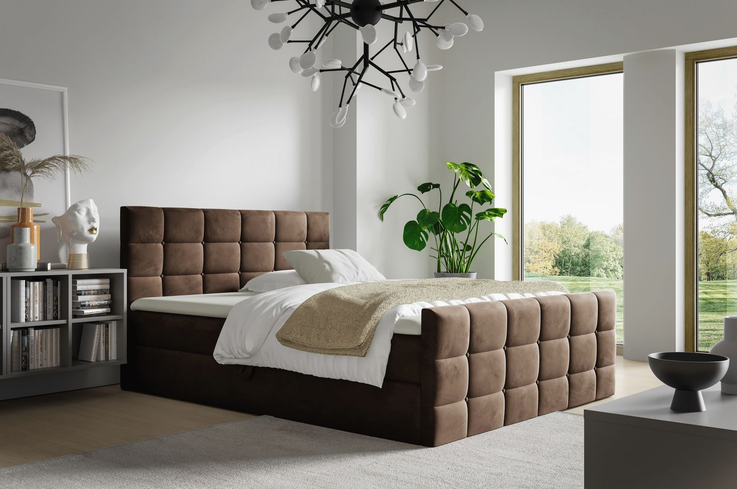Vysoká manželská postel 140x200 ELIANE s LED osvětlením - hnědá + topper ZDARMA