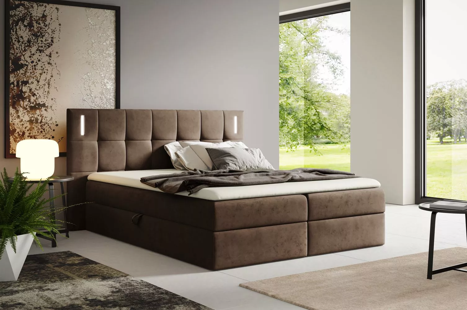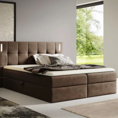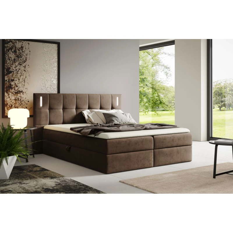 Manželská postel 140x200 FANA s LED osvětlením - hnědá + topper ZDARMA