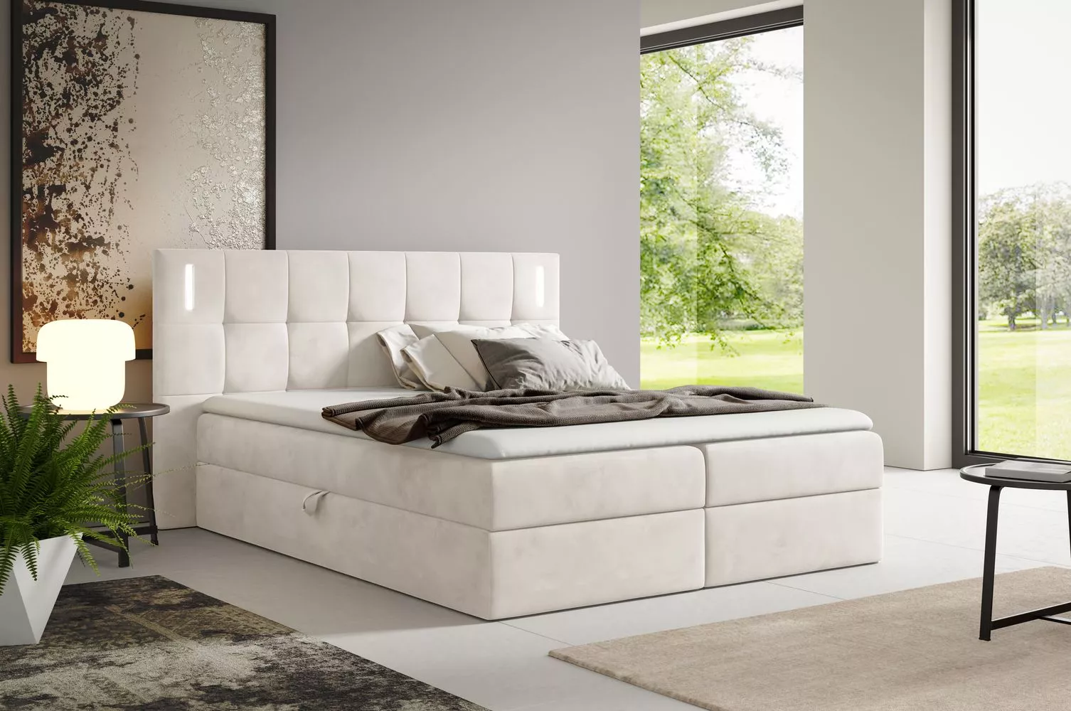 Manželská postel 200x200 FANA s LED osvětlením - béžová + topper ZDARMA